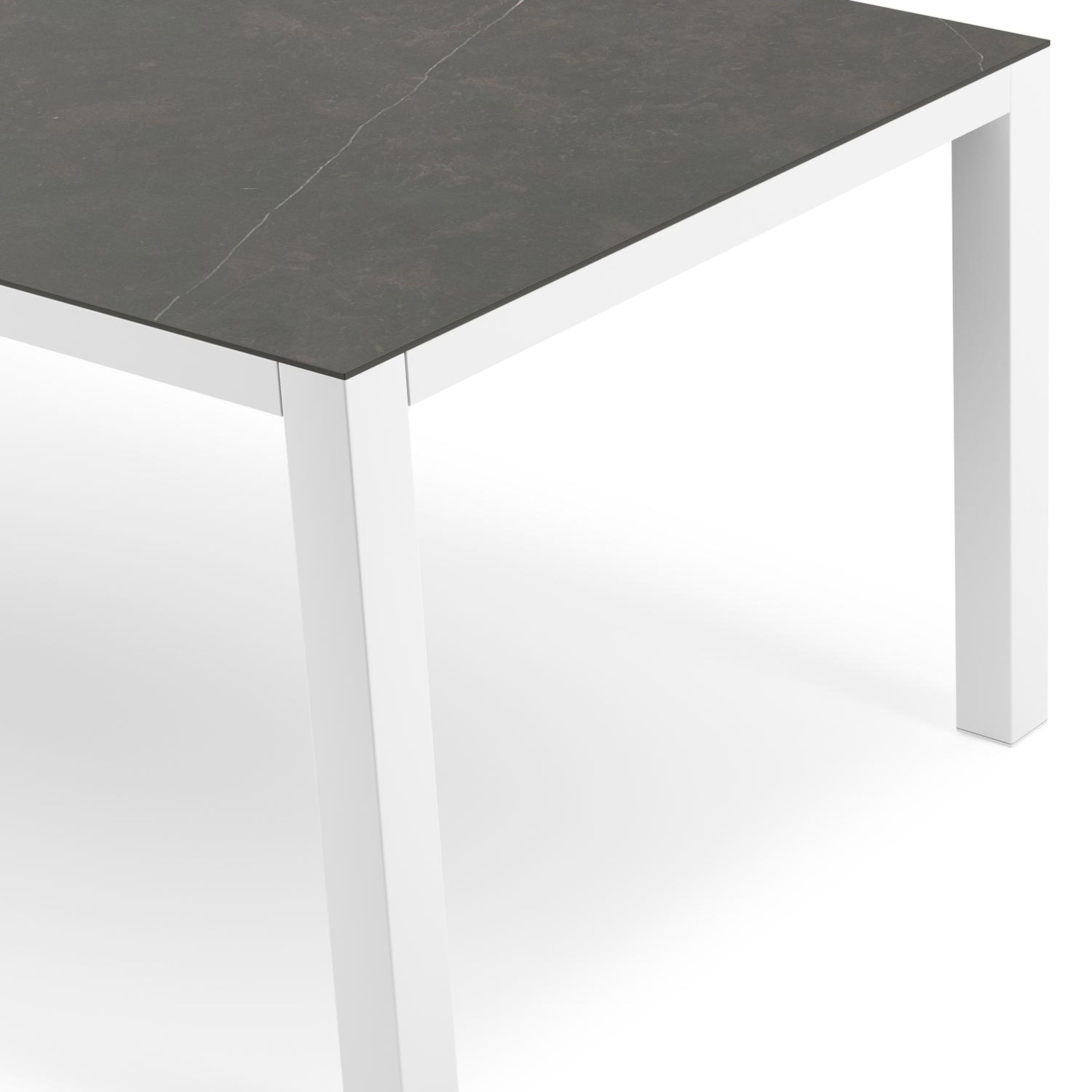 La table de jardin Como présente un design robuste et minimaliste grâce à ses pieds en forme de blocs et par l'alignement sobre de l'armature. Ce caractère contemporain donne à la table une touche de modernité.