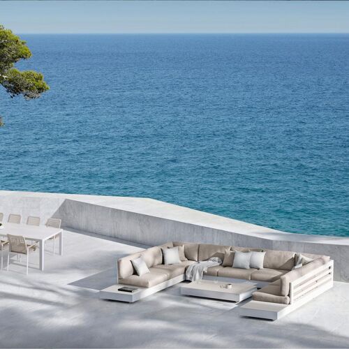 La table de jardin Como présente un design robuste et minimaliste grâce à ses pieds en forme de blocs et par l'alignement sobre de l'armature. Ce caractère contemporain donne à la table une touche de modernité.