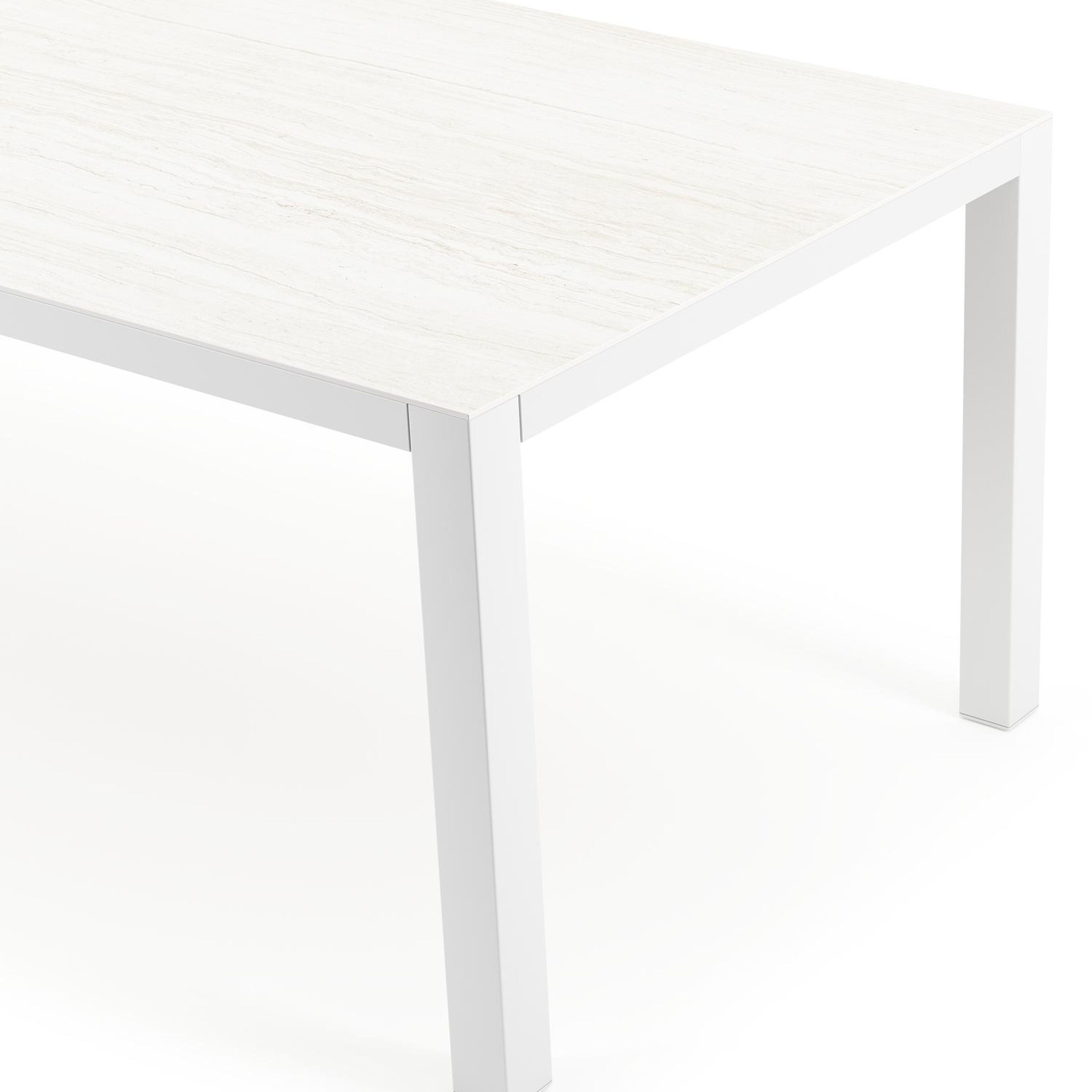 La table de jardin Como présente un design robuste et minimaliste grâce à ses pieds en forme de blocs et par l'alignement sobre de l'armature. Ce caractère contemporain donne à la table une touche de modernité.