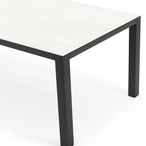 Un plateau de table entièrement en céramique consiste en une plaque en céramique qui est cuite à une température extrêmement élevée. Ce matériau est très solide et résiste aux coups. Un plateau de table entièrement en céramique résiste au gel, à la chaleur et aux rayures, et est facile à nettoyer.