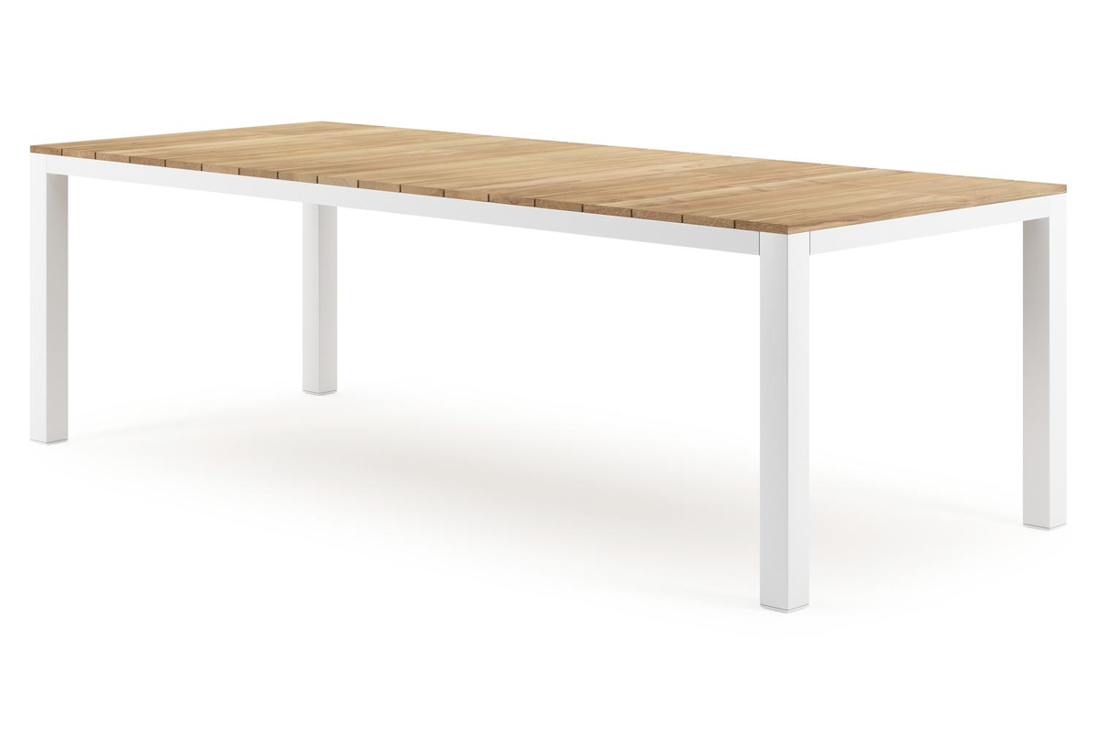 La table de jardin Como présente un design robuste et minimaliste grâce à ses pieds en forme de blocs et par l'alignement sobre de l'armature. Ce caractère contemporain donne à la table une touche de modernité.