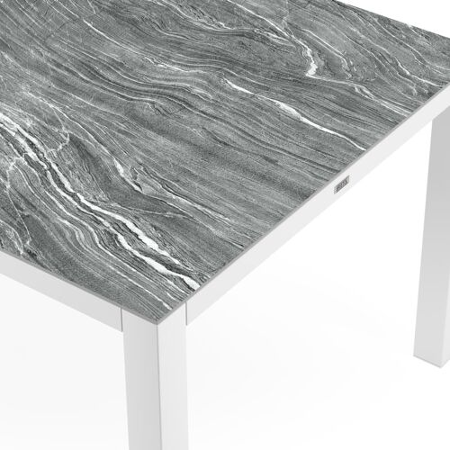 La table Como a une armature au style minimaliste et intemporel. L’armature est en aluminium, un matériau léger mais robuste et inoxydable qui convient très bien aux meubles de jardin. Cette table est dotée d’un plateau Mar Del Plata. Un plateau de table unique reflétant les vagues de la mer. Le plateau présente des mouchetures scintillantes qui créent un magnifique effet perlé. L’avantage des plateaux de table en céramique pleine est qu’ils résistent aux rayures ainsi qu’à toutes les conditions météorologiques.