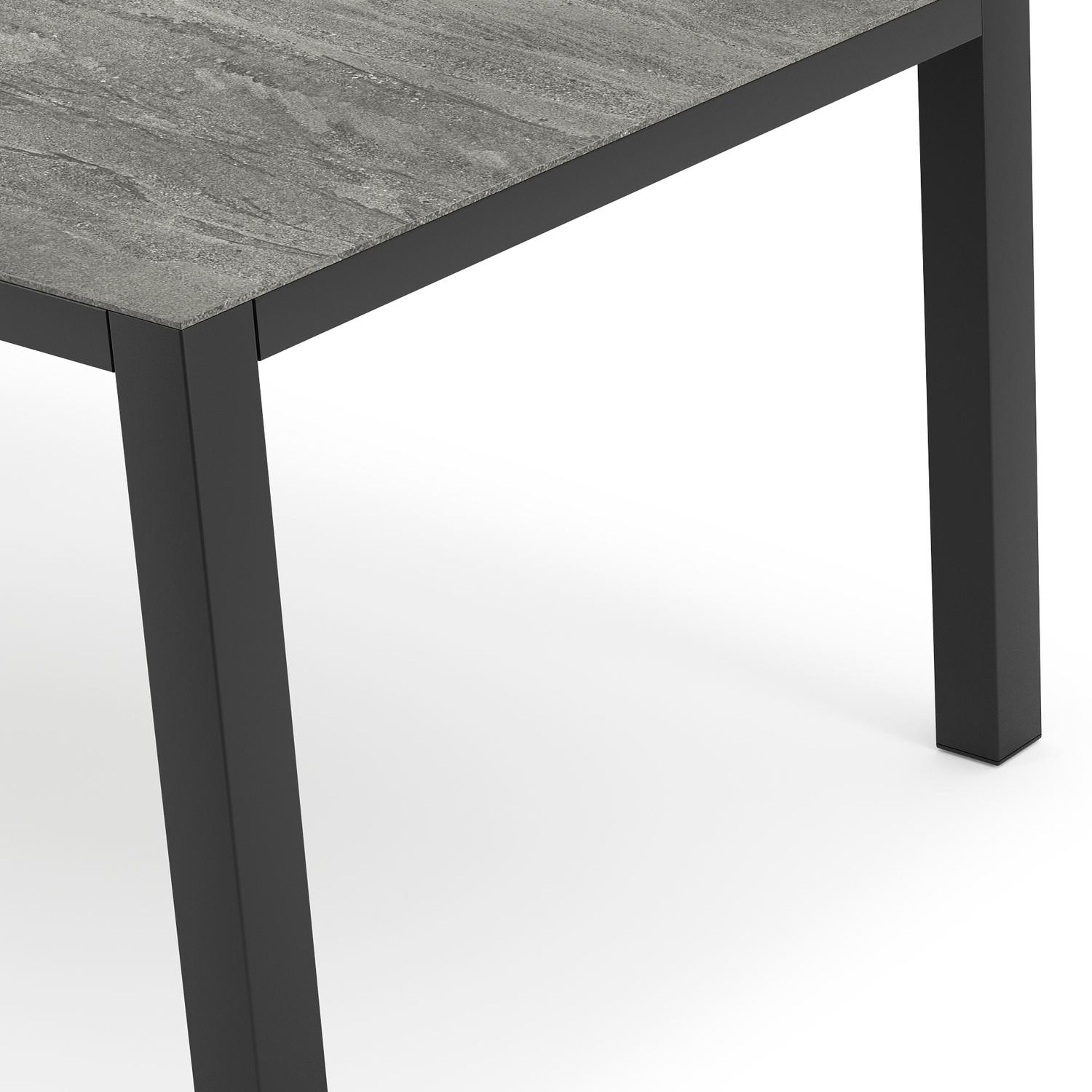 La table de jardin Como présente un design robuste et minimaliste grâce à ses pieds en forme de blocs et par l'alignement sobre de l'armature. Ce caractère contemporain donne à la table une touche de modernité.