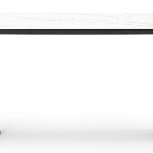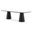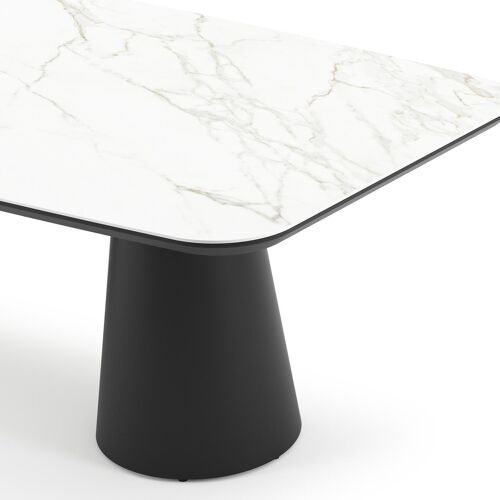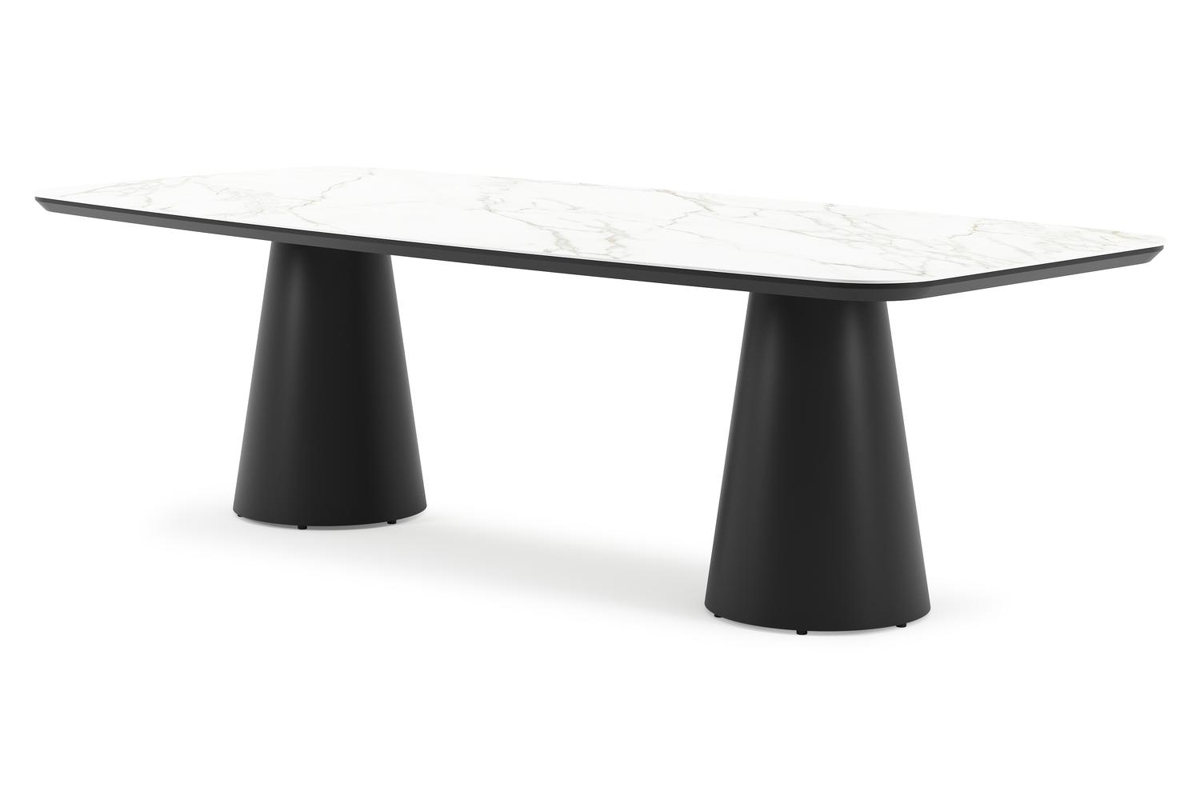 Table de jardin Donato forme de bateau en aluminium noir et céramique pleine Calacatta - Lg. 255 x Lrg. 115 x Haut. 73 cm | Exterioo