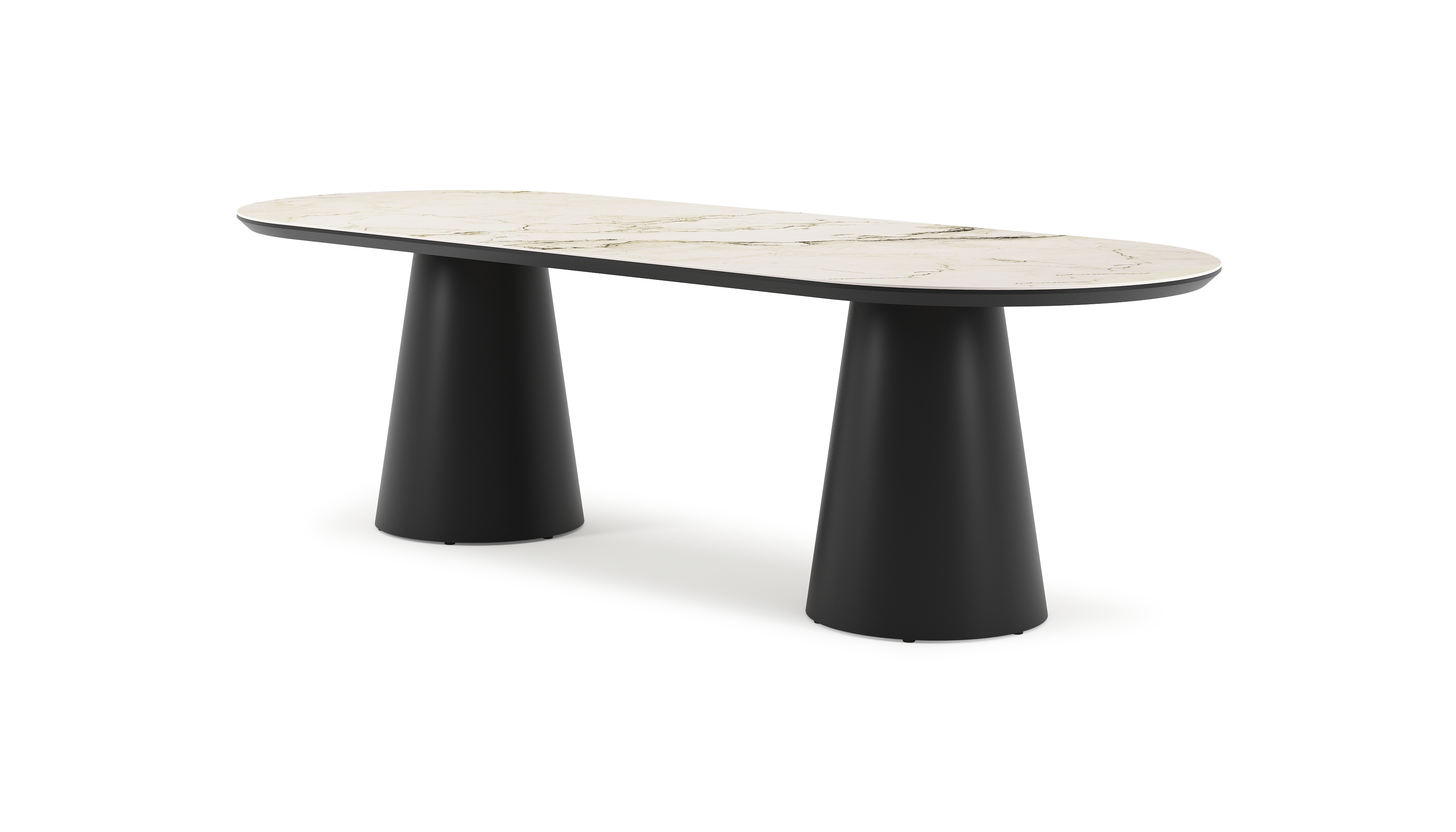 La table de jardin Donato allie l'élégance extérieure à des formes robustes et ludiques. Avec un pied conique entièrement en aluminium et un plateau arrondi, cette table crée une fusion harmonieuse entre un design contemporain et un aspect robuste.
