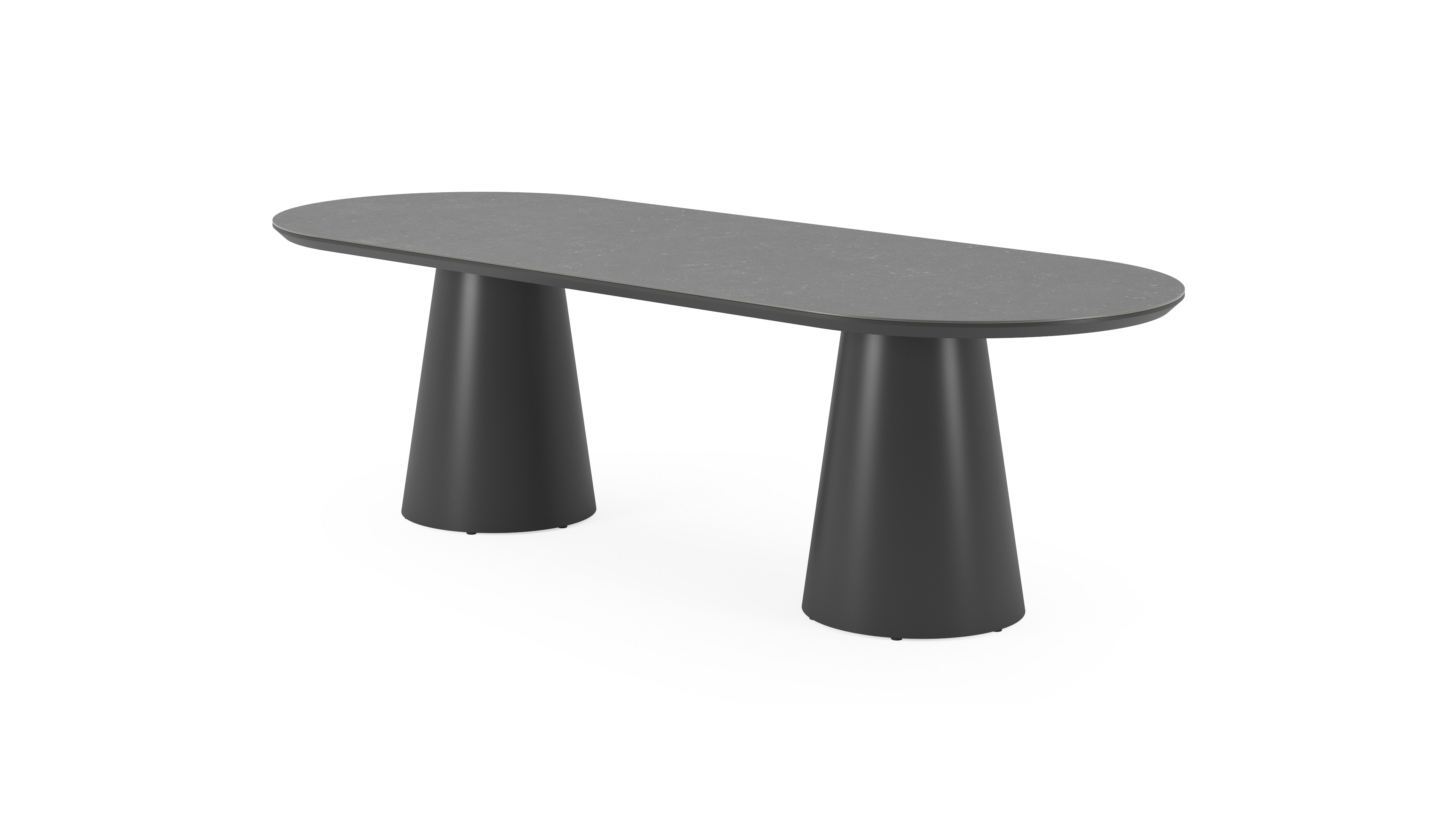 La table de jardin Donato allie l'élégance extérieure à des formes robustes et ludiques. Avec un pied conique entièrement en aluminium et un plateau arrondi, cette table crée une fusion harmonieuse entre un design contemporain et un aspect robuste.