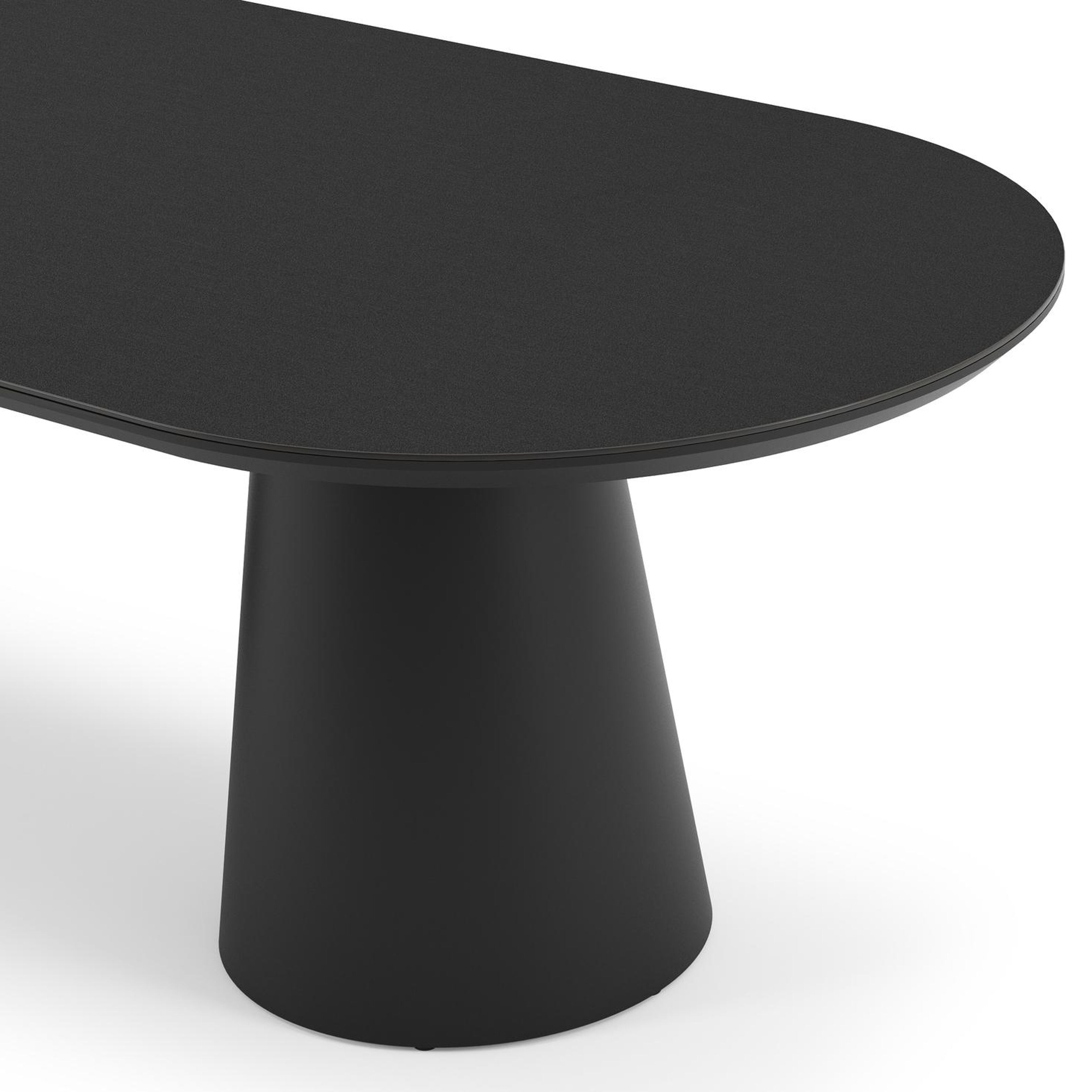 La table de jardin Donato allie l'élégance extérieure à des formes robustes et ludiques. Avec un pied conique entièrement en aluminium et un plateau arrondi, cette table crée une fusion harmonieuse entre un design contemporain et un aspect robuste.