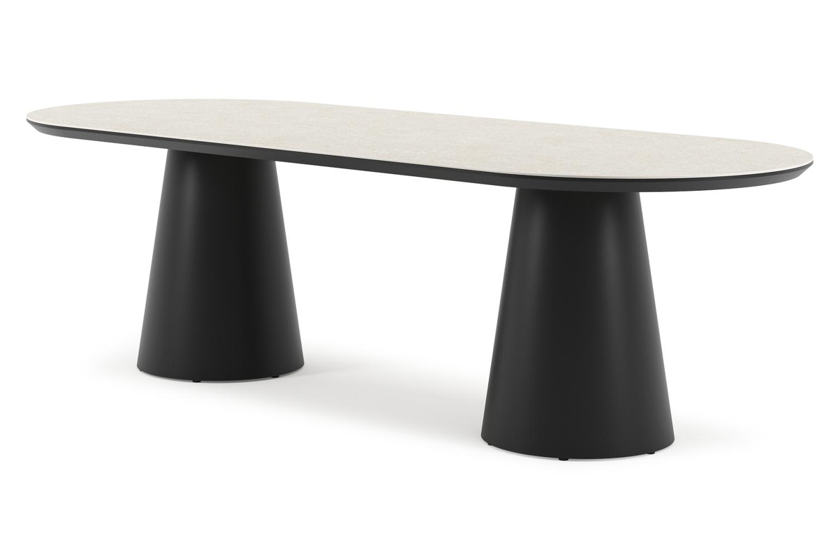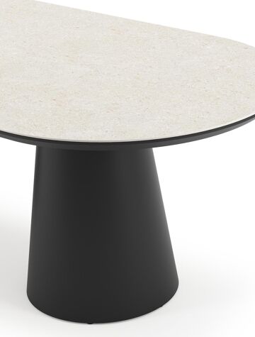 La table de jardin Donato allie l'élégance extérieure à des formes robustes et ludiques. Avec un pied conique entièrement en aluminium et un plateau arrondi, cette table crée une fusion harmonieuse entre un design contemporain et un aspect robuste.