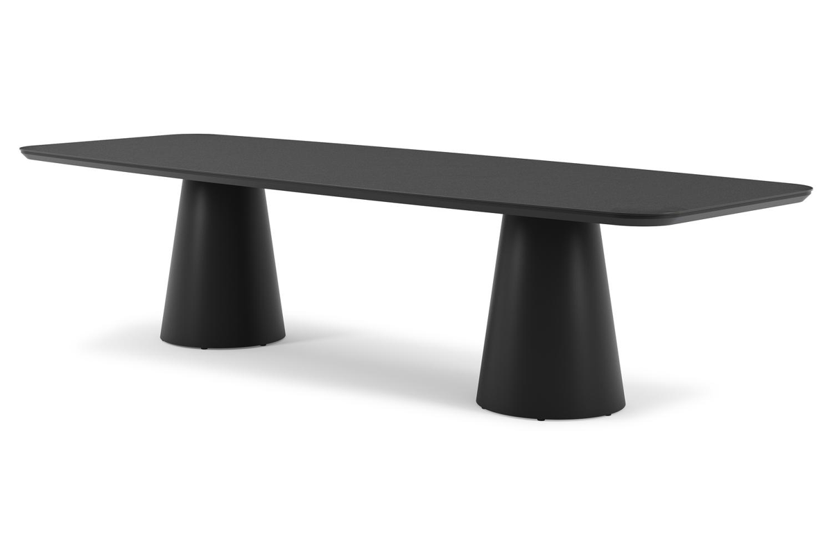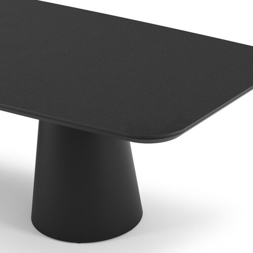 La table de jardin Donato allie l'élégance extérieure à des formes robustes et ludiques. Avec un pied conique entièrement en aluminium et un plateau arrondi, cette table crée une fusion harmonieuse entre un design contemporain et un aspect robuste.
