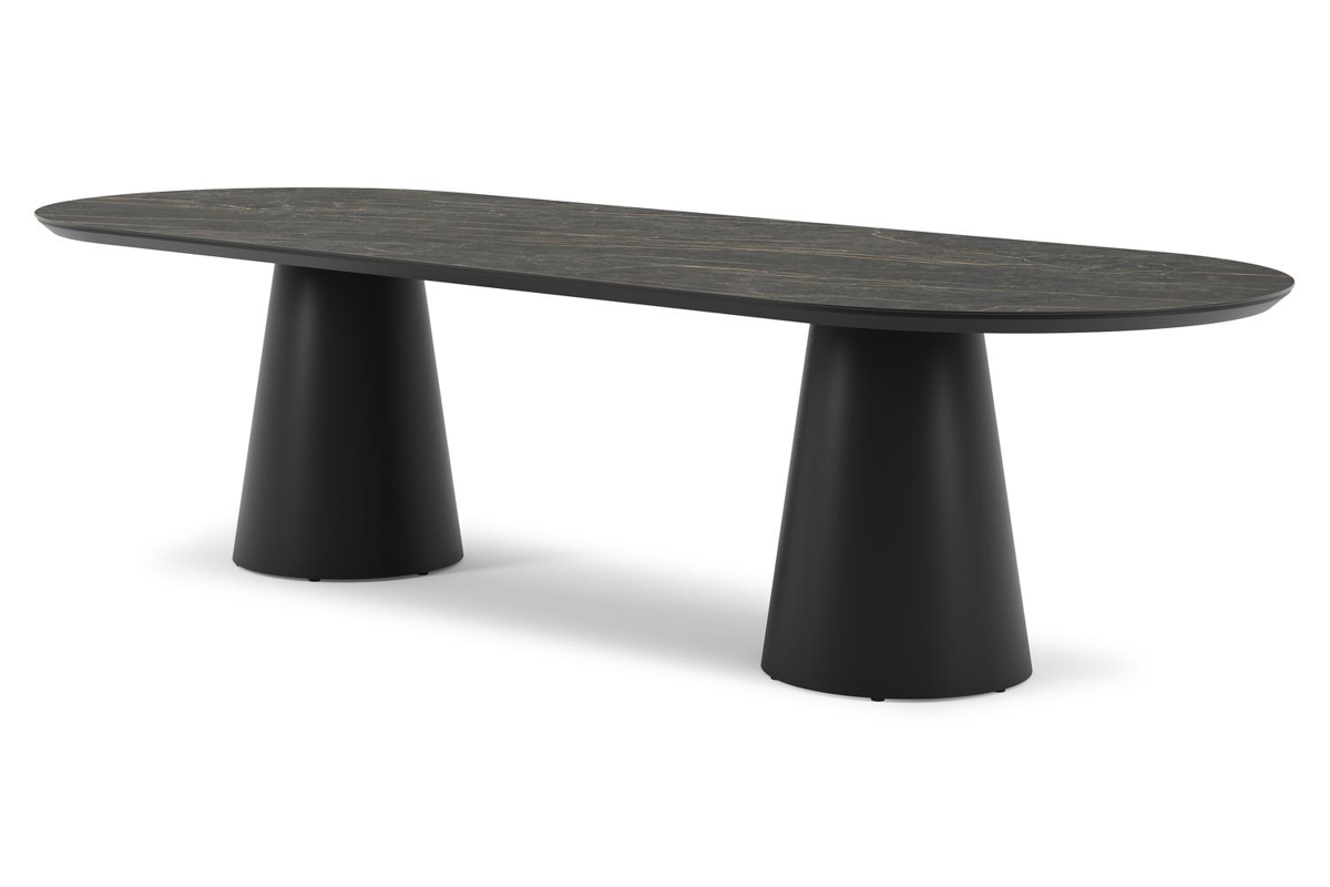 La table de jardin Donato allie l'élégance extérieure à des formes robustes et ludiques. Avec un pied conique entièrement en aluminium et un plateau arrondi, cette table crée une fusion harmonieuse entre un design contemporain et un aspect robuste.