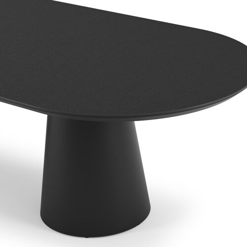 La table de jardin Donato allie l'élégance extérieure à des formes robustes et ludiques. Avec un pied conique entièrement en aluminium et un plateau arrondi, cette table crée une fusion harmonieuse entre un design contemporain et un aspect robuste.
