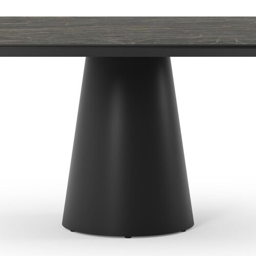 La table de jardin Donato allie l'élégance extérieure à des formes robustes et ludiques. Avec un pied conique entièrement en aluminium et un plateau arrondi, cette table crée une fusion harmonieuse entre un design contemporain et un aspect robuste.