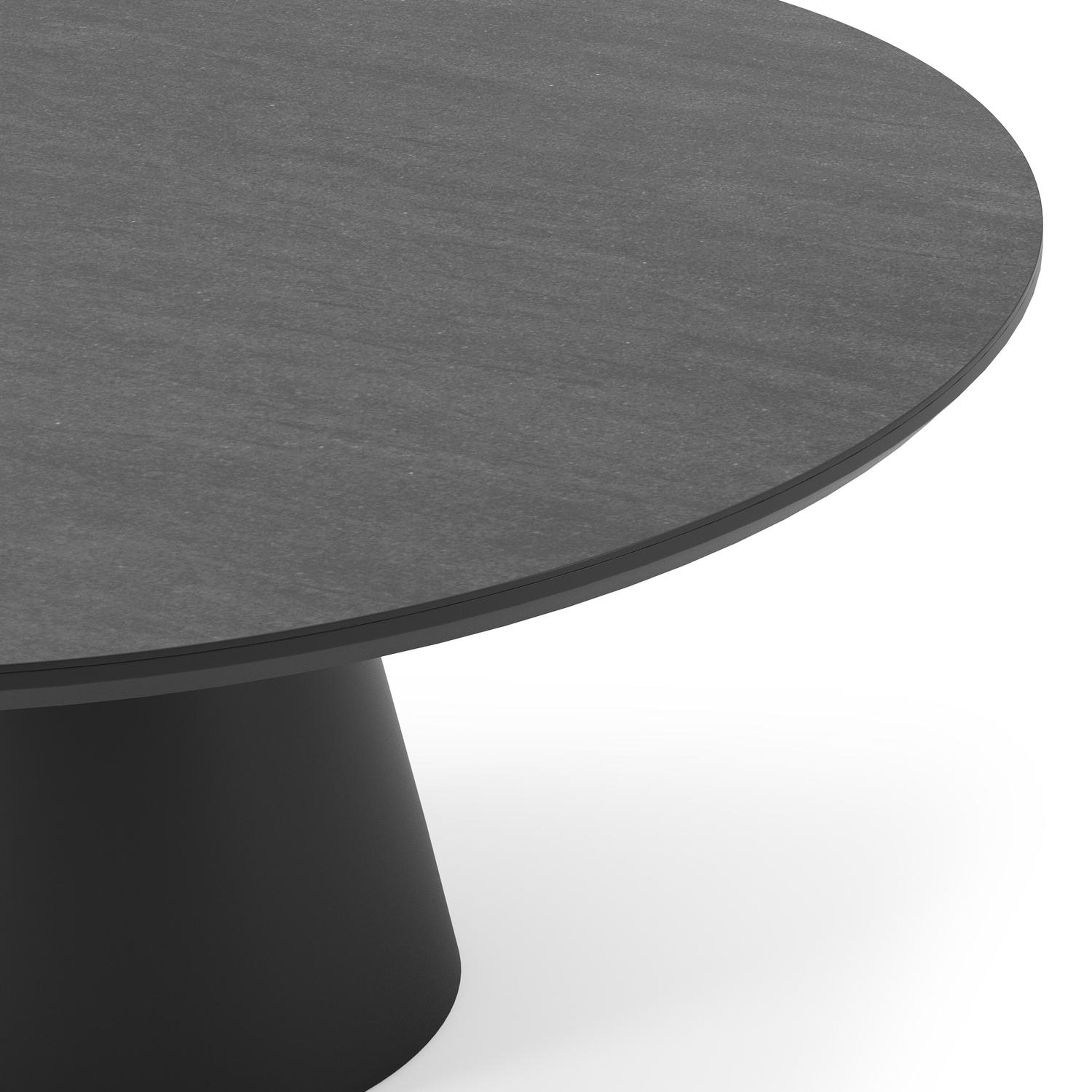 La table de jardin Donato allie l'élégance extérieure à des formes robustes et ludiques. Avec un pied conique entièrement en aluminium et un plateau arrondi, cette table crée une fusion harmonieuse entre un design contemporain et un aspect robuste.