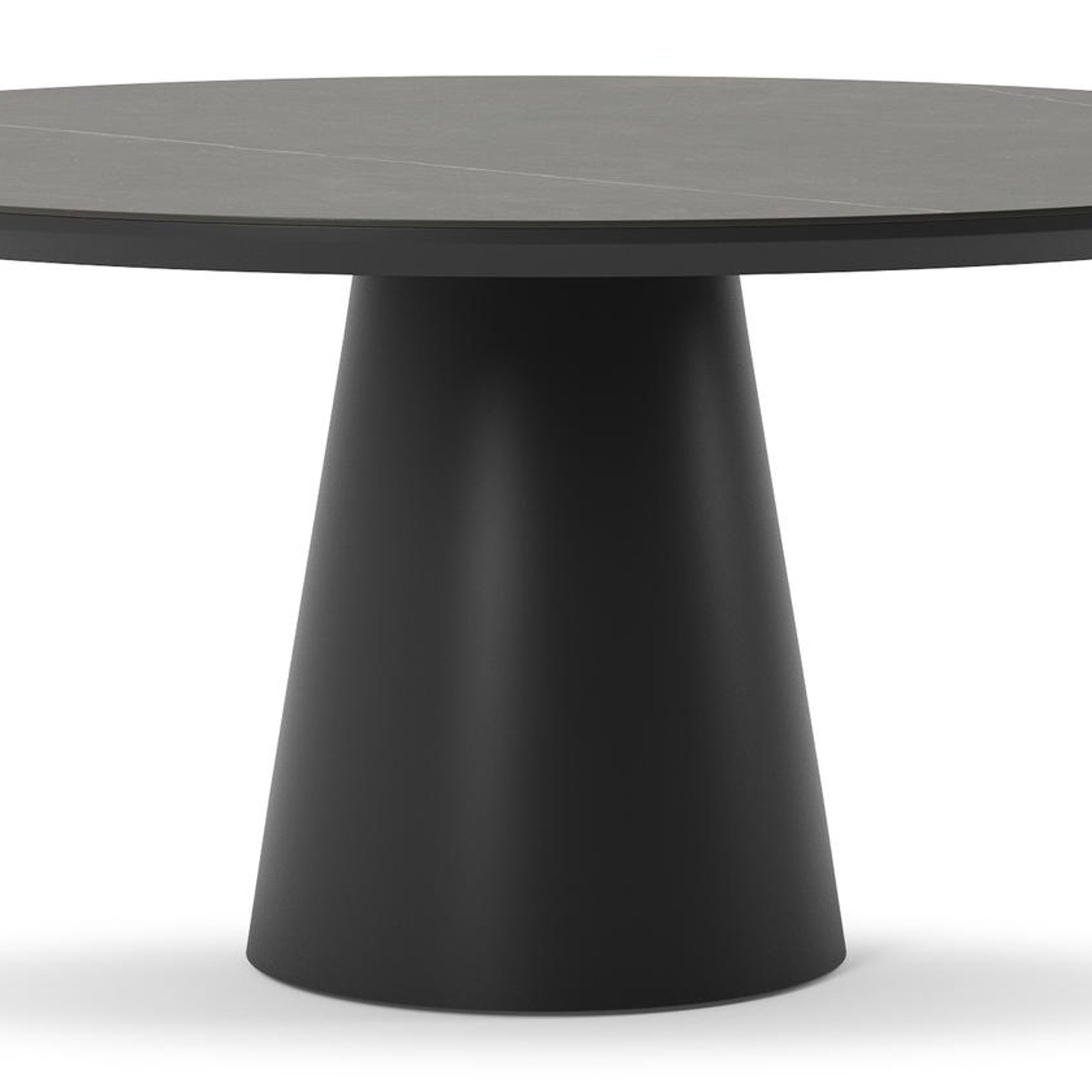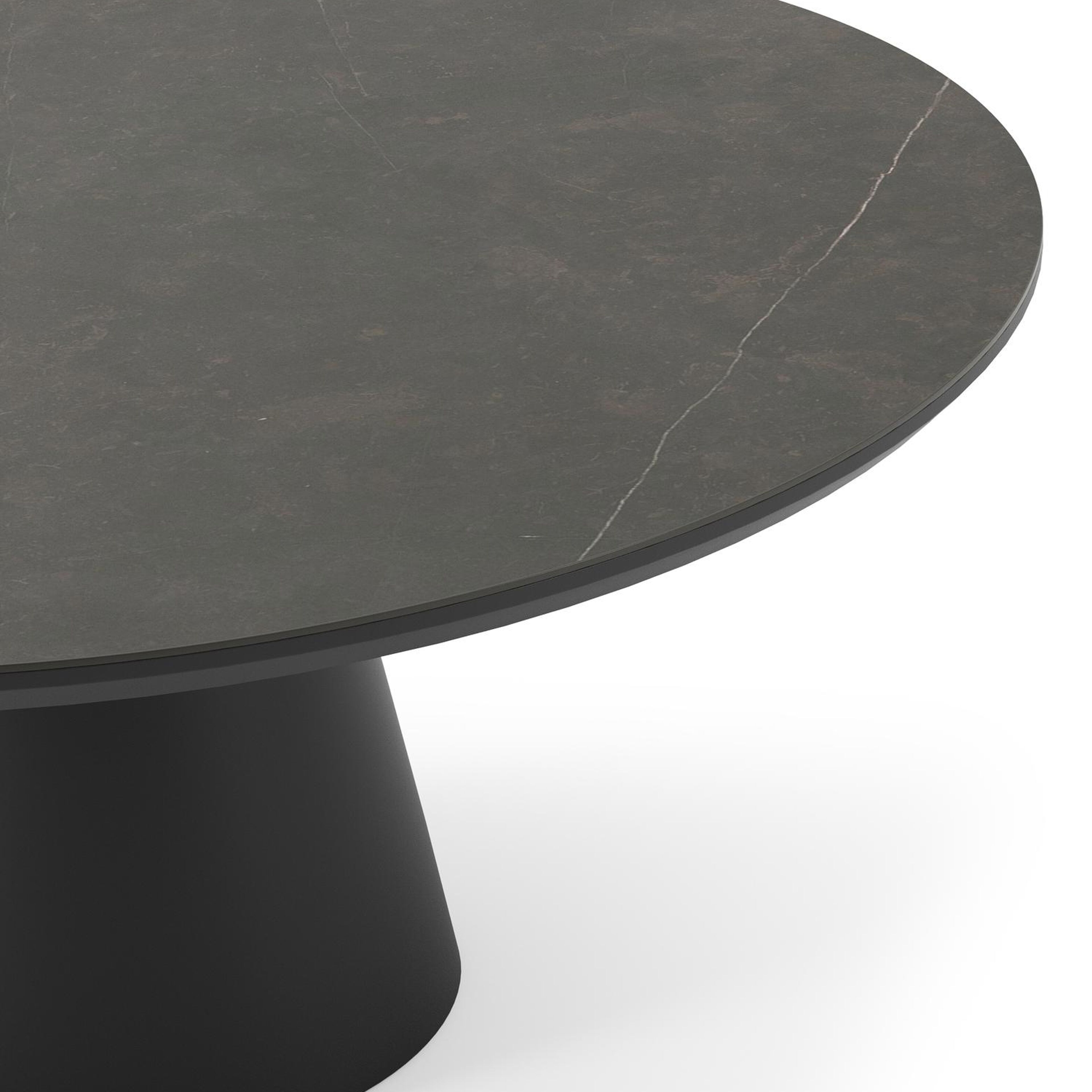 La table de jardin Donato allie l'élégance extérieure à des formes robustes et ludiques. Avec un pied conique entièrement en aluminium et un plateau arrondi, cette table crée une fusion harmonieuse entre un design contemporain et un aspect robuste.