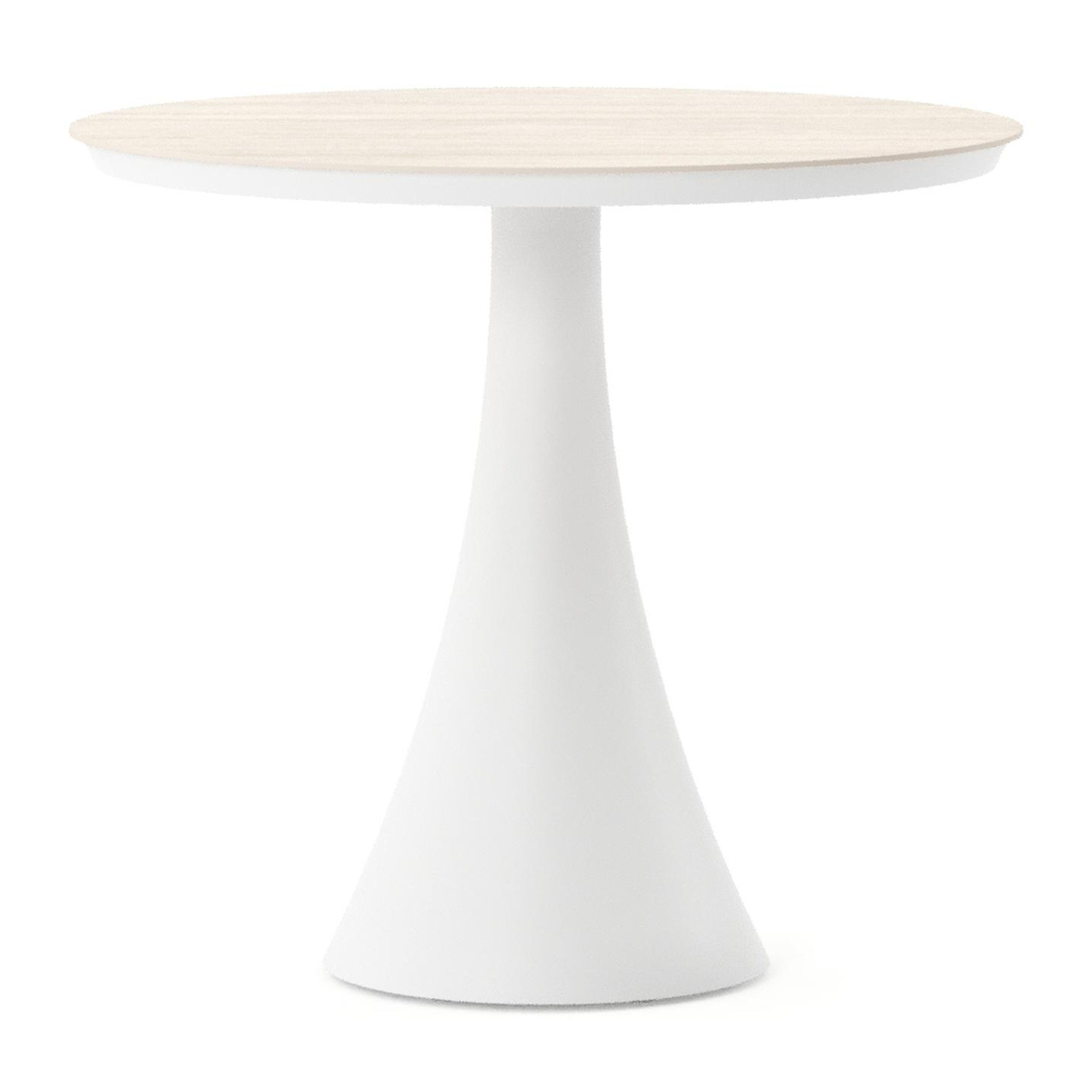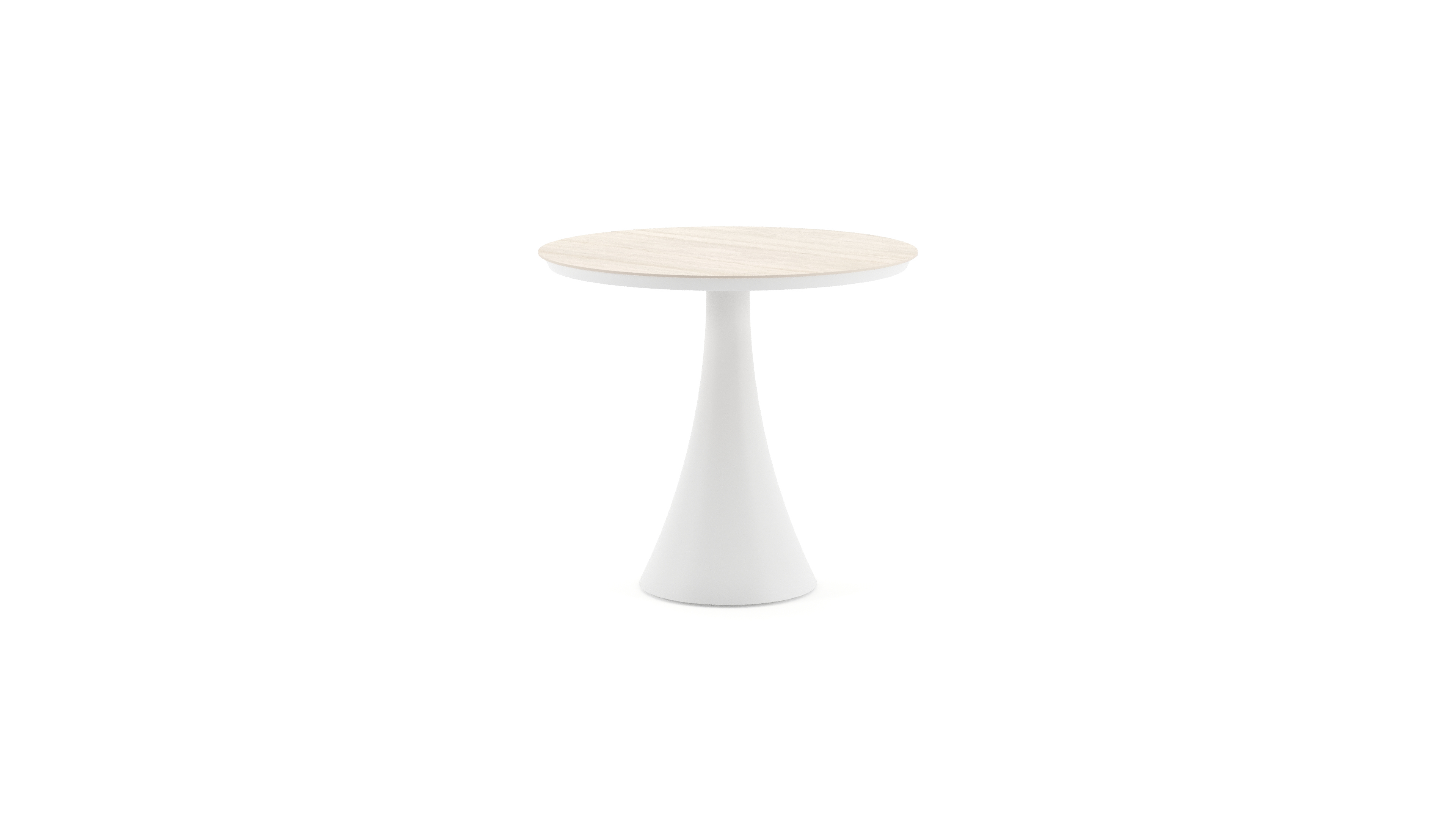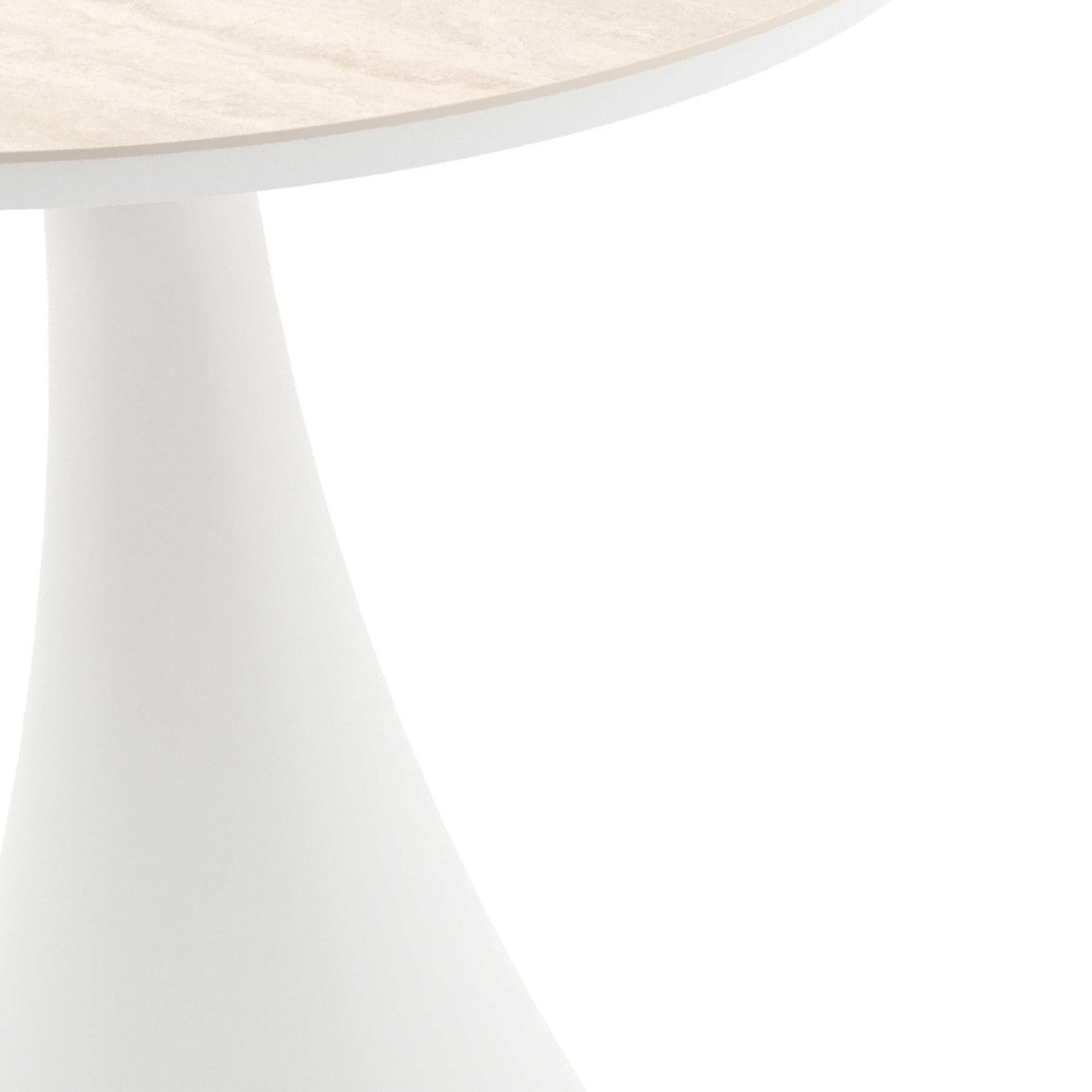 Table de jardin Fano ronde en aluminium blanc et céramique pleine Travertino Bianco - Diam. 85 x Haut. 74 cm | Exterioo mobilier de jardin