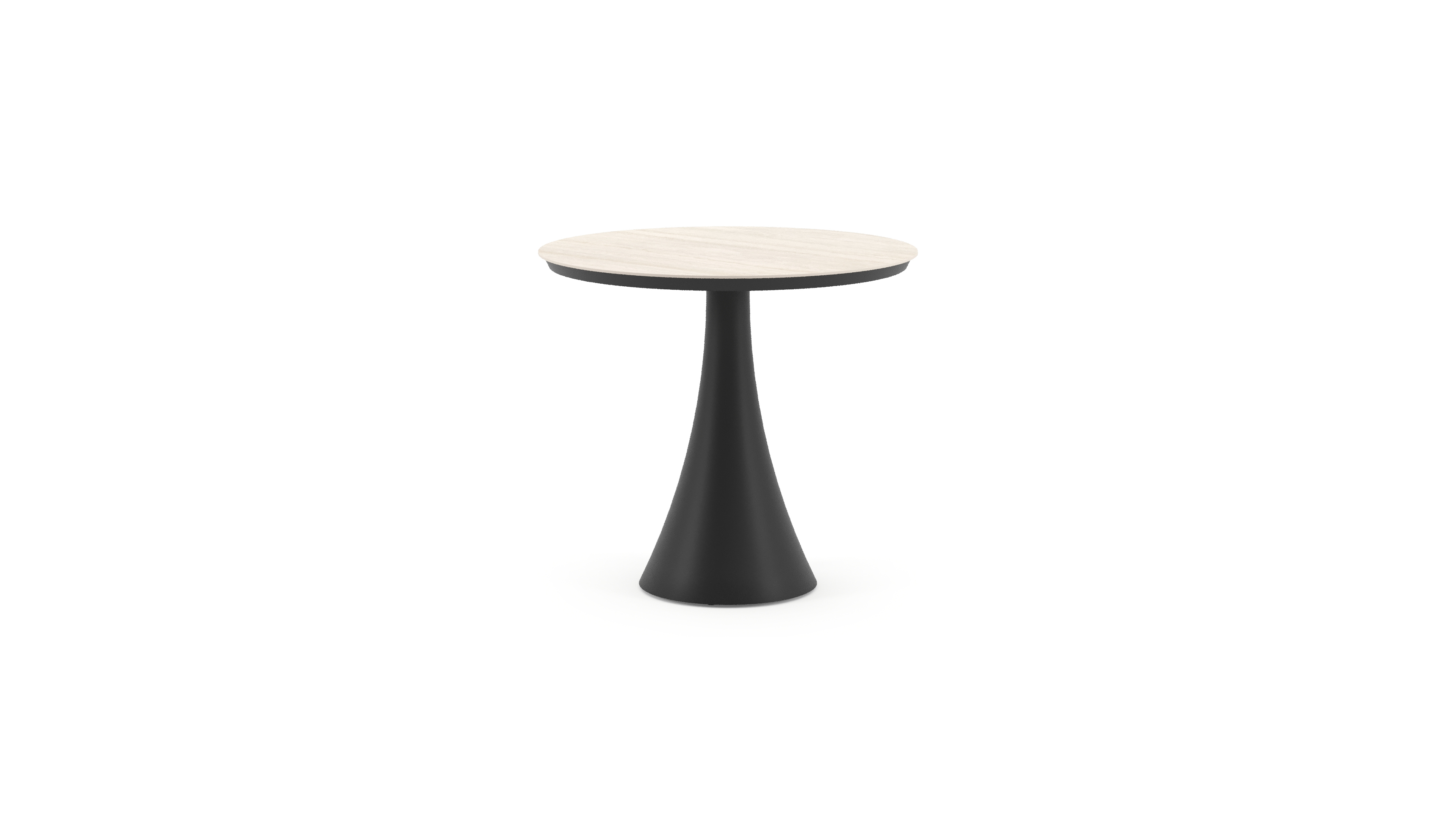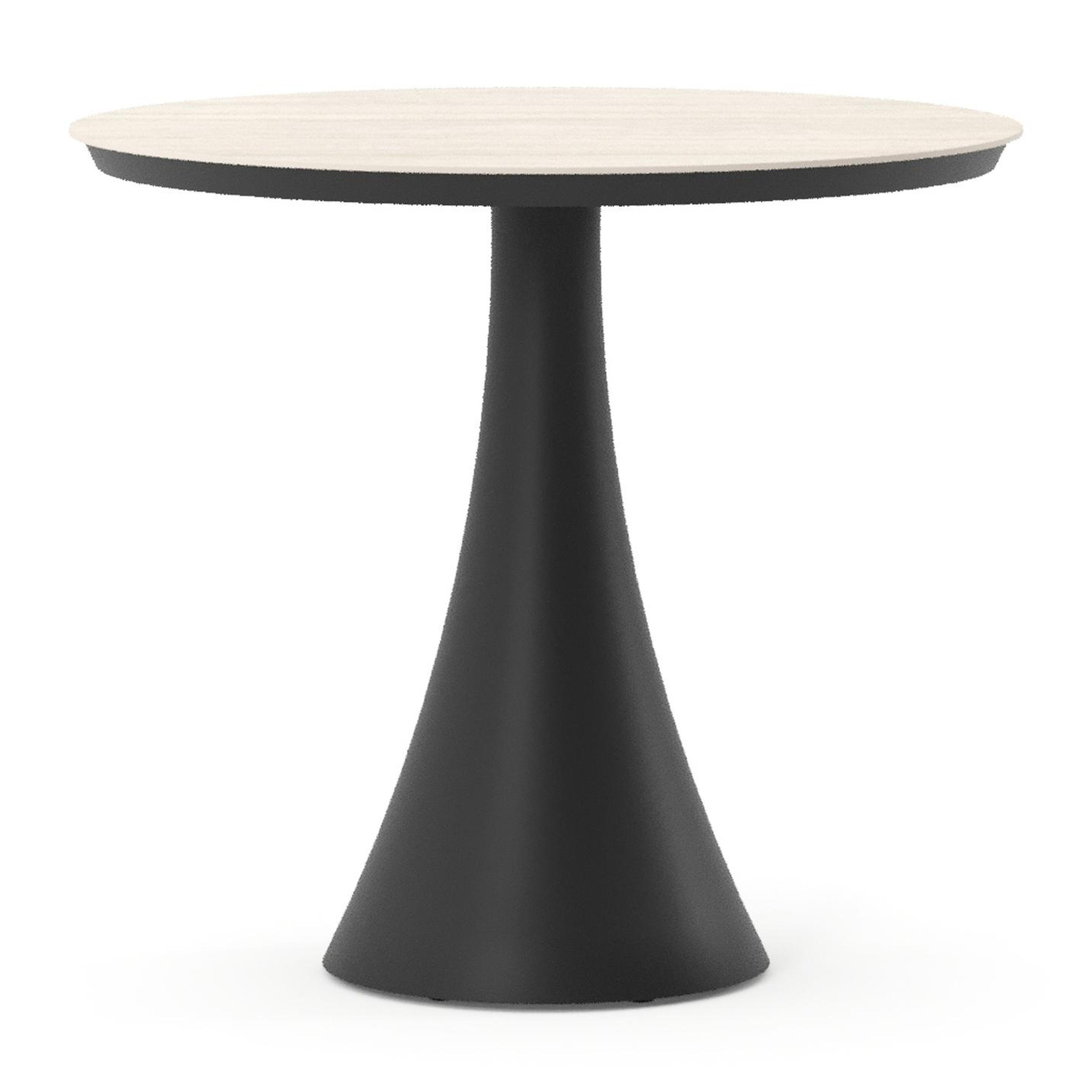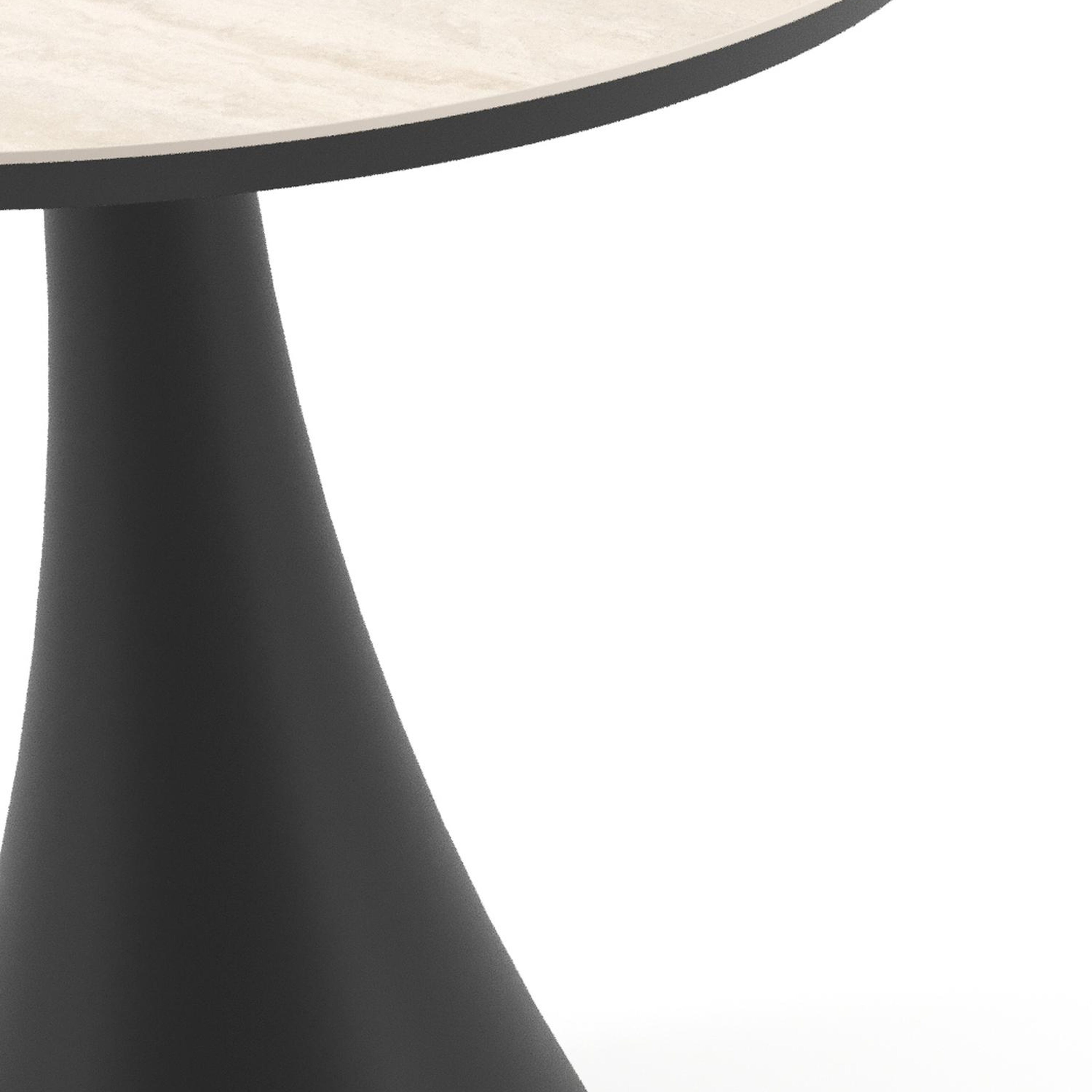 Table de jardin Fano ronde en aluminium noir et céramique pleine Travertino Bianco - Diam. 85 x Haut. 74 cm | Exterioo mobilier de jardin