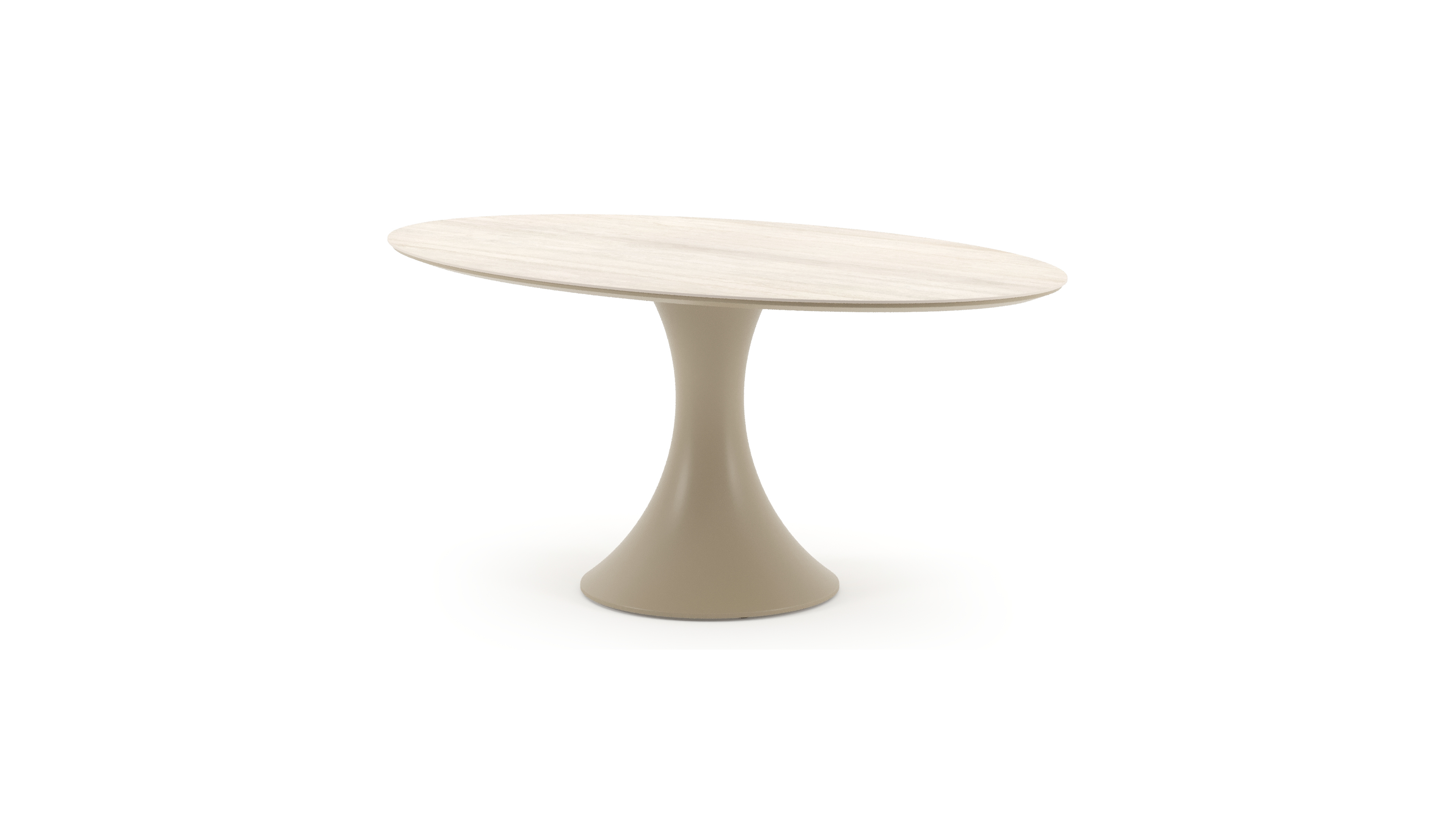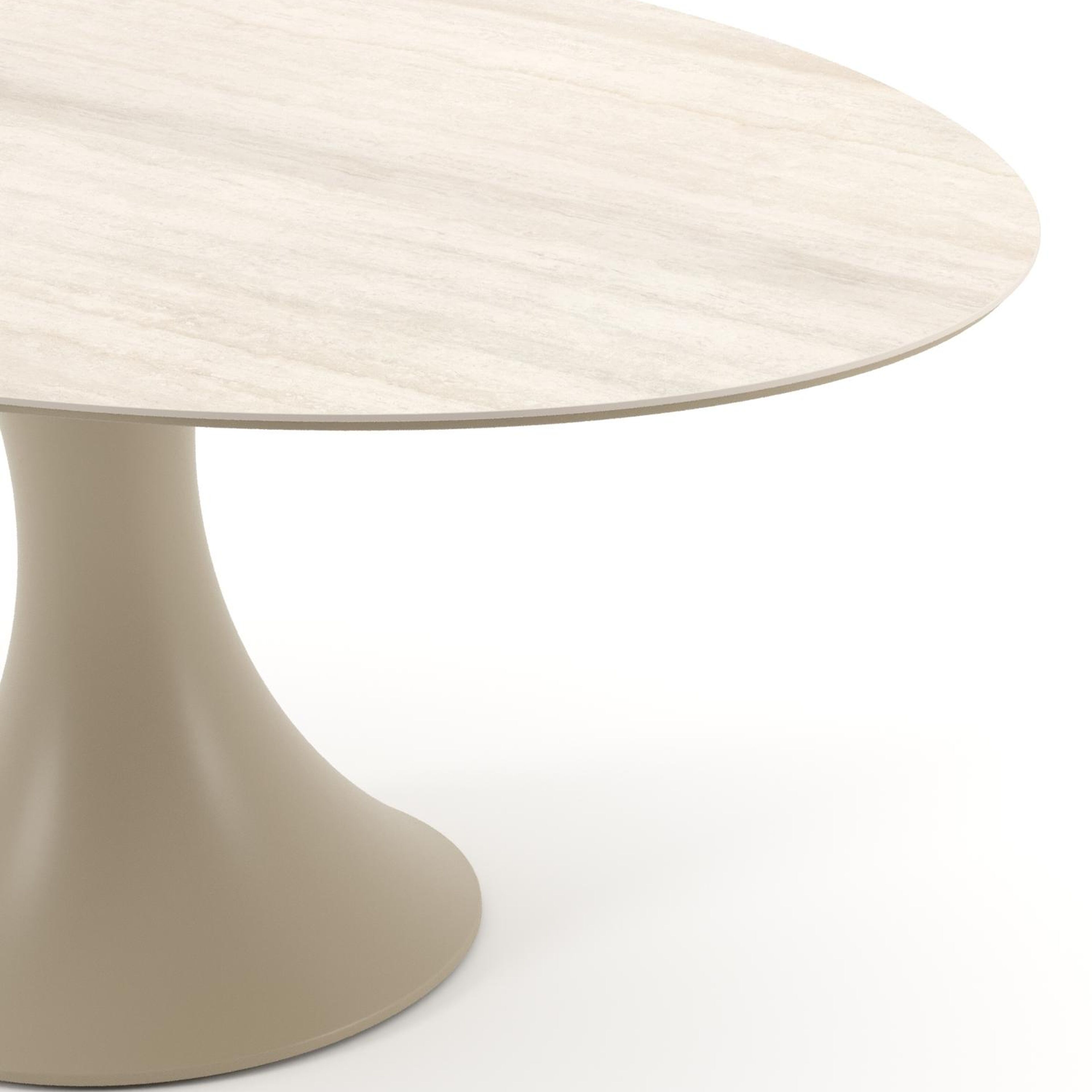 Table de jardin Fano ovale en aluminium beige et céramique pleine Travertino Bianco - Lg. 180 x Lrg. 110 x Haut. 75 cm | Exterioo mobilier de jardin