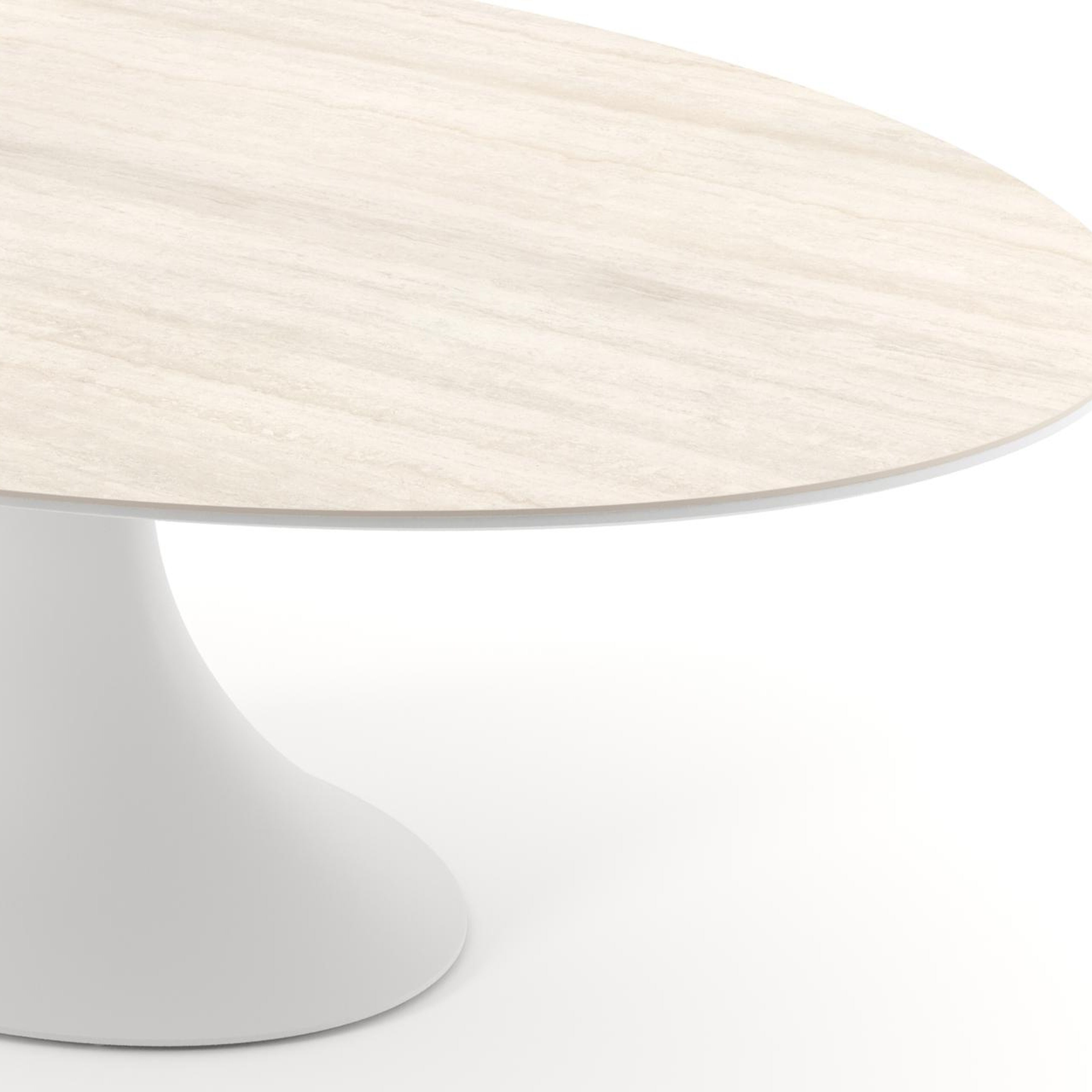 Table de jardin Fano ovale en aluminium blanc et céramique pleine Travertino Bianco - Lg. 238 x Lrg. 135 x Haut. 75 cm | Exterioo mobilier de jardin