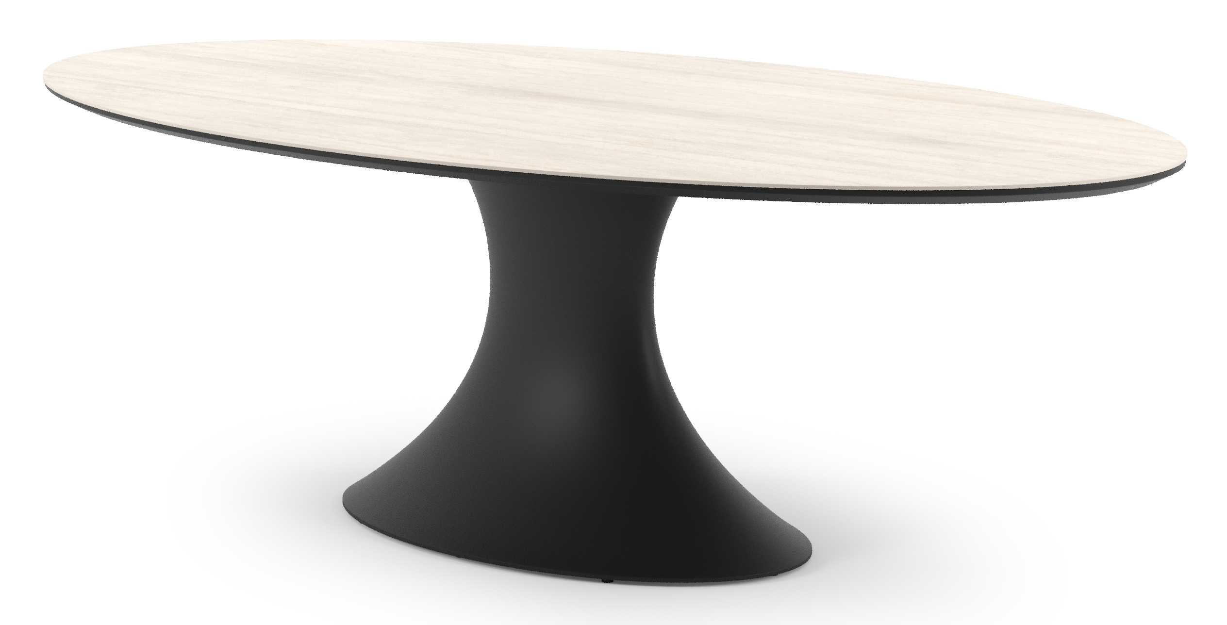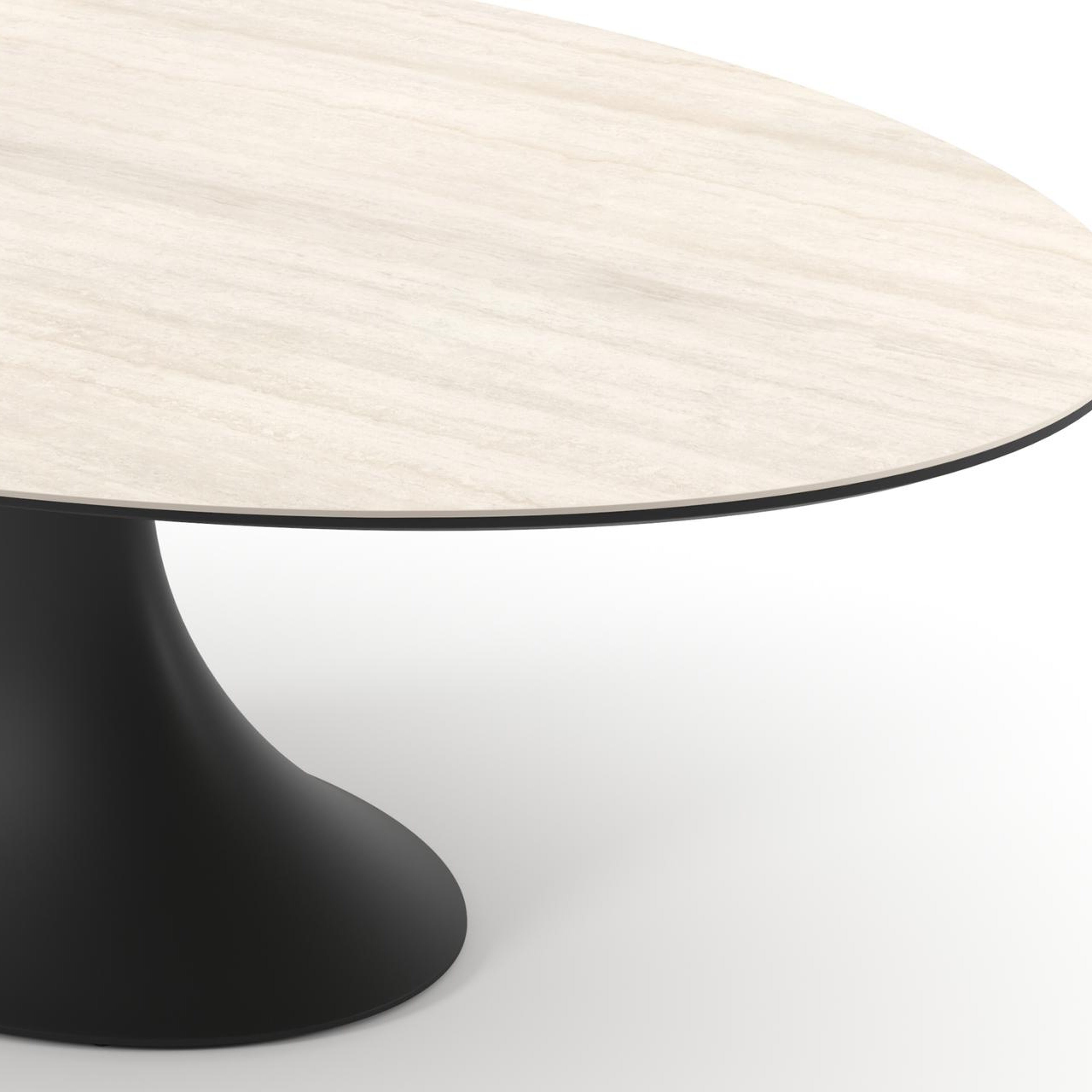 Table de jardin Fano ovale en aluminium noir et céramique pleine Travertino Bianco - Lg. 238 x Lrg. 135 x Haut. 75 cm | Exterioo mobilier de jardin