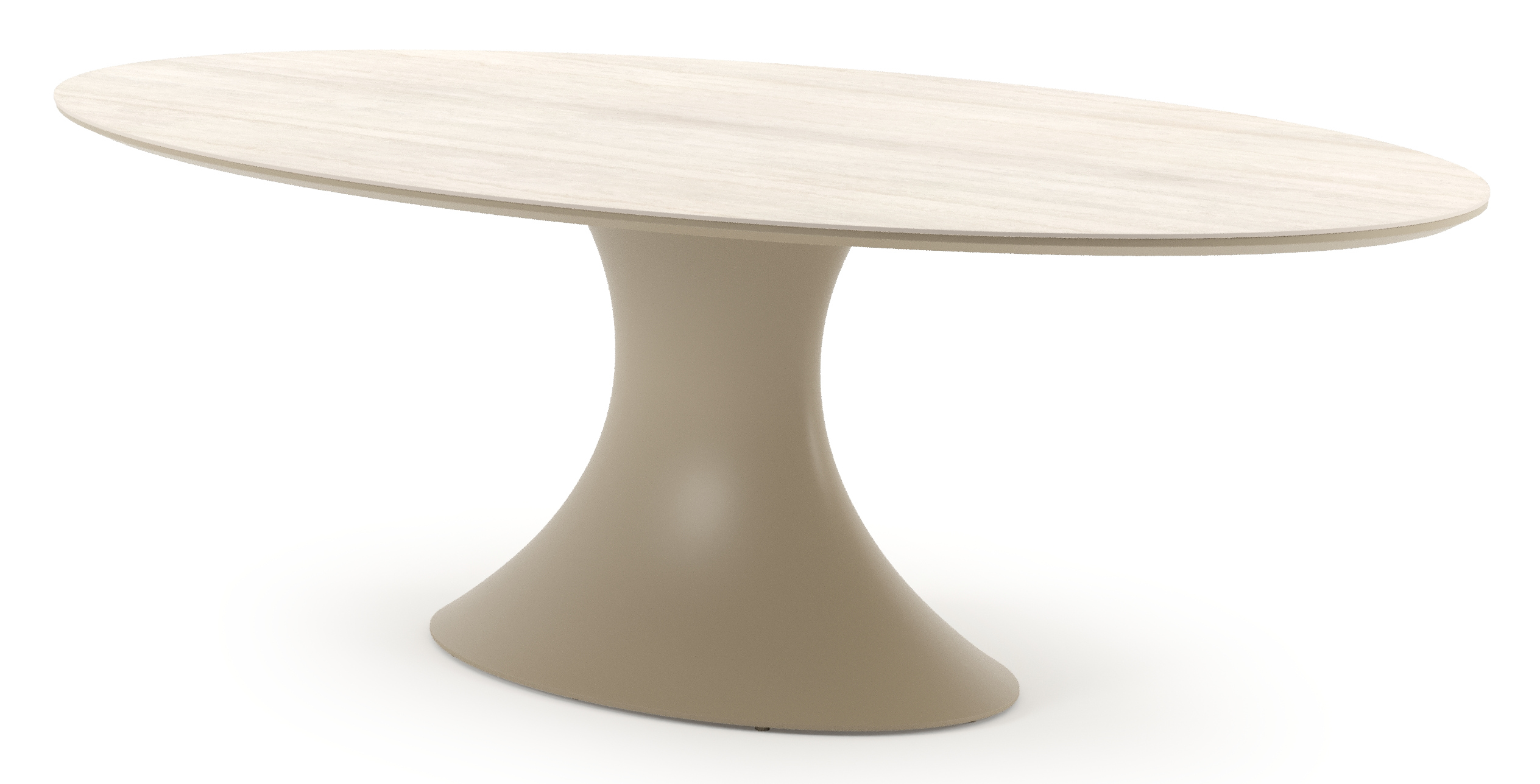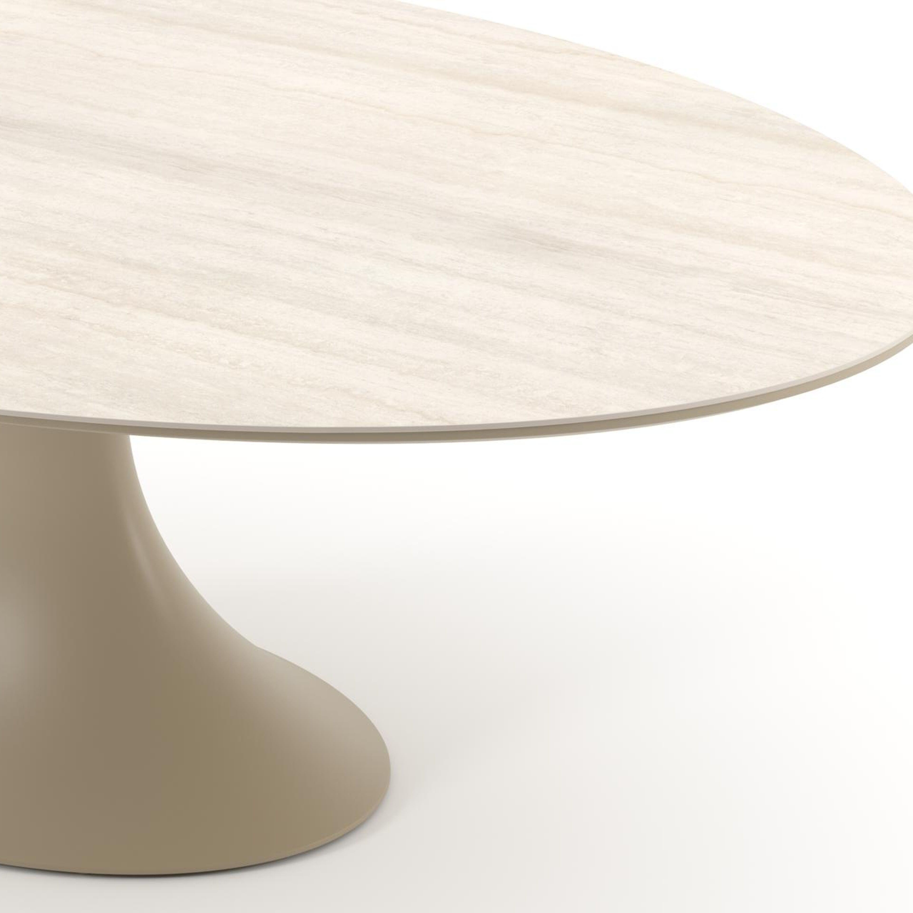 Table de jardin Fano ovale en aluminium beige et céramique pleine Travertino Bianco - Lg. 238 x Lrg. 135 x Haut. 75 cm | Exterioo mobilier de jardin