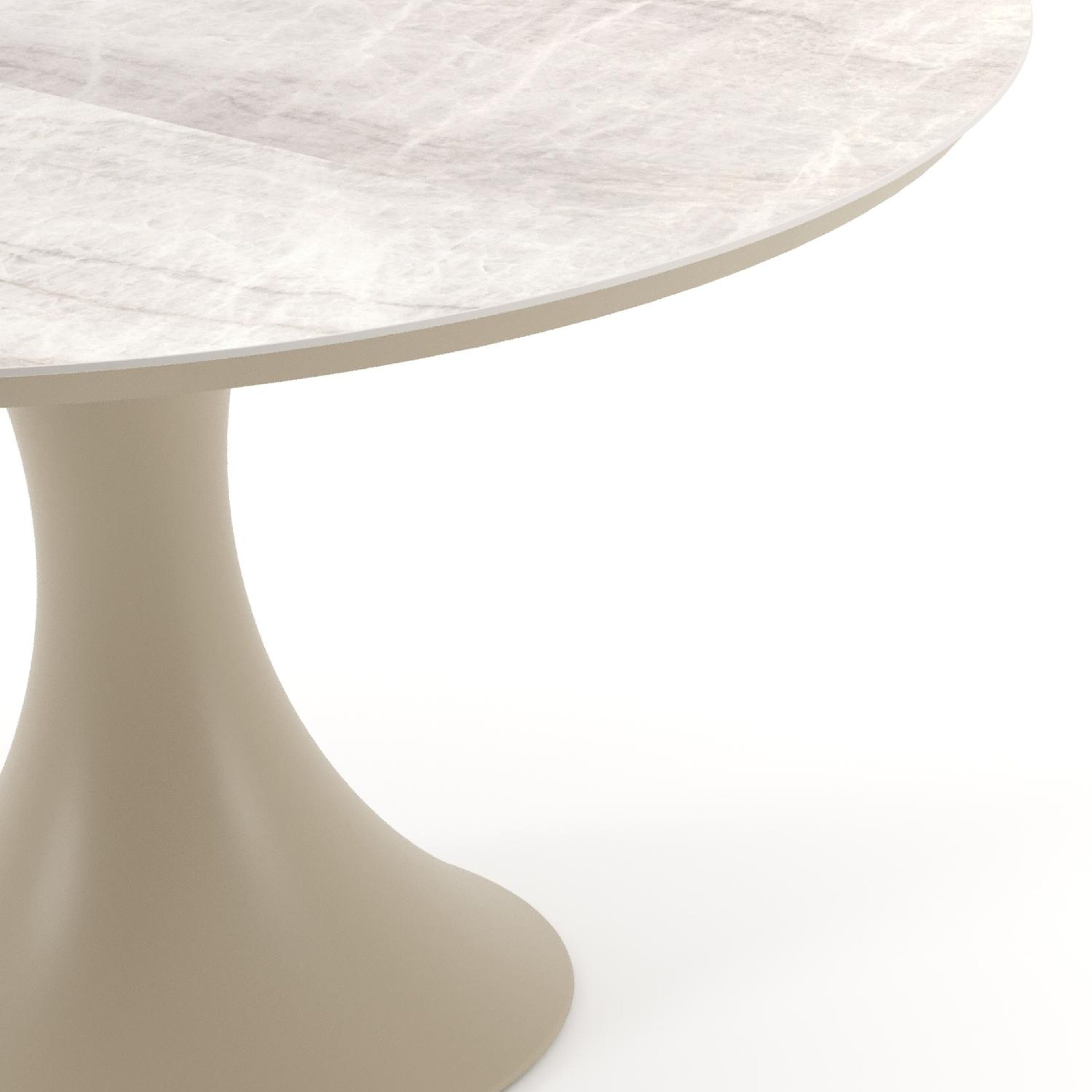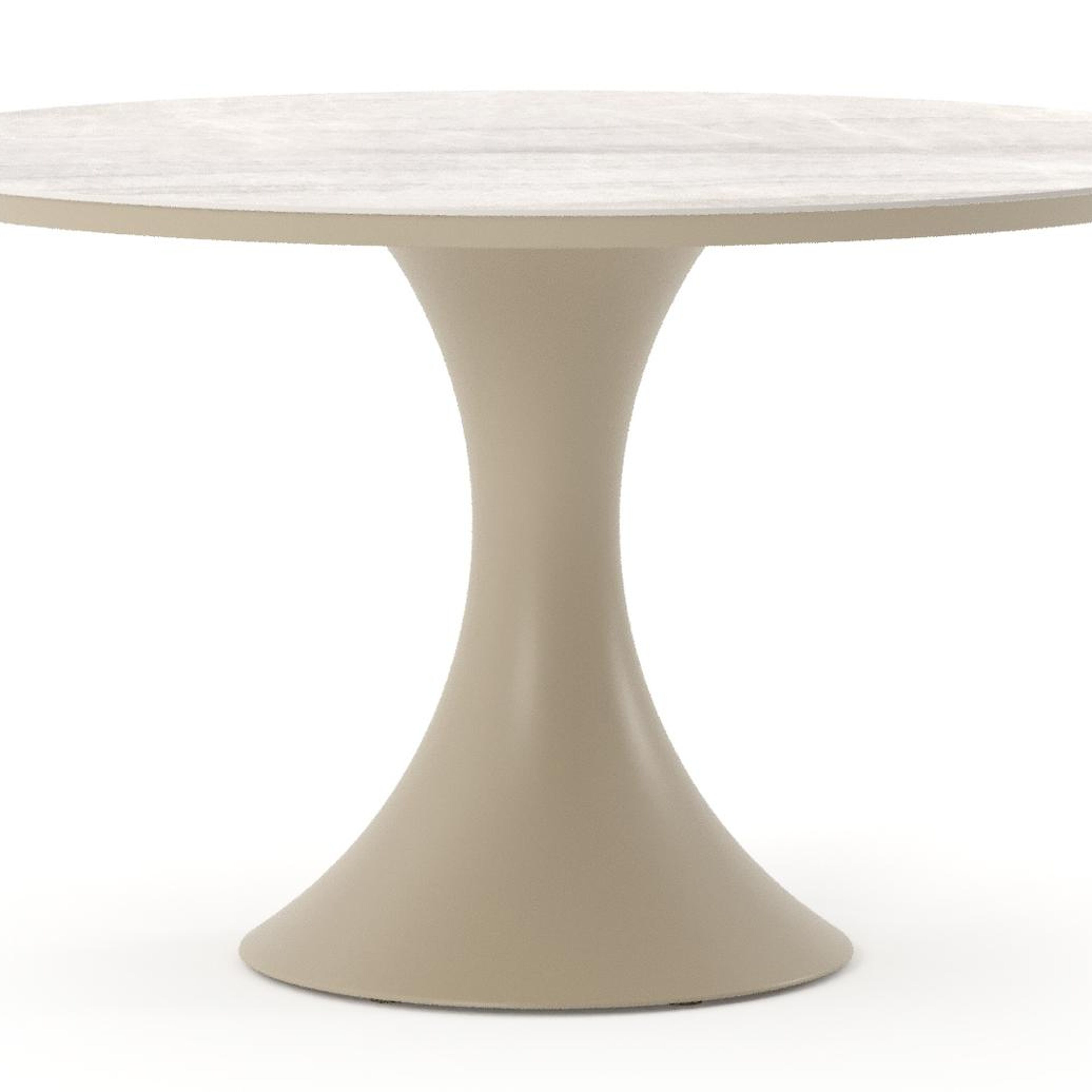 Table de jardin Fano ronde en aluminium beige et céramique pleine Taj Mahal - Diam. 130 x Haut. 74 cm | Exterioo mobilier de jardin