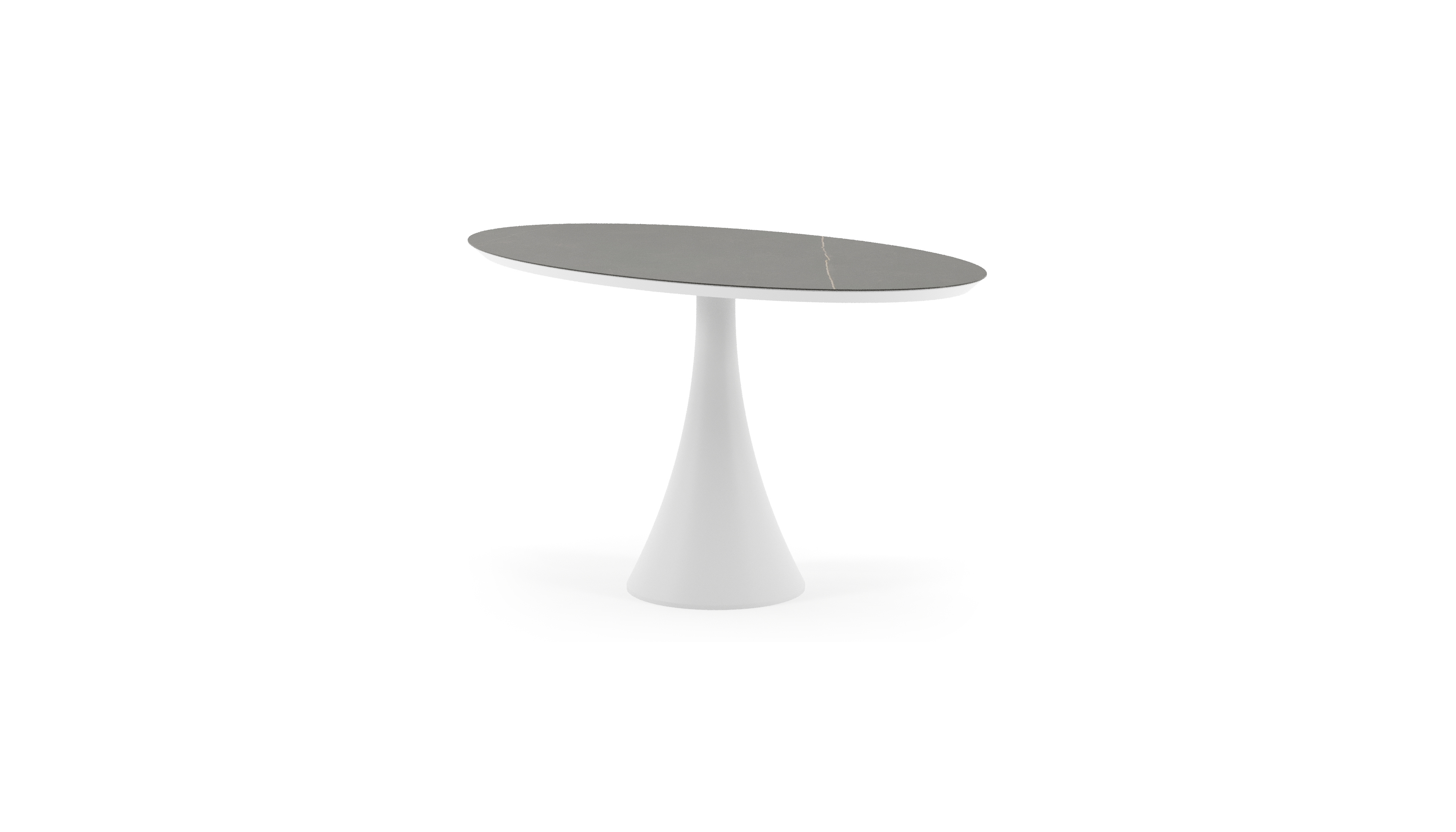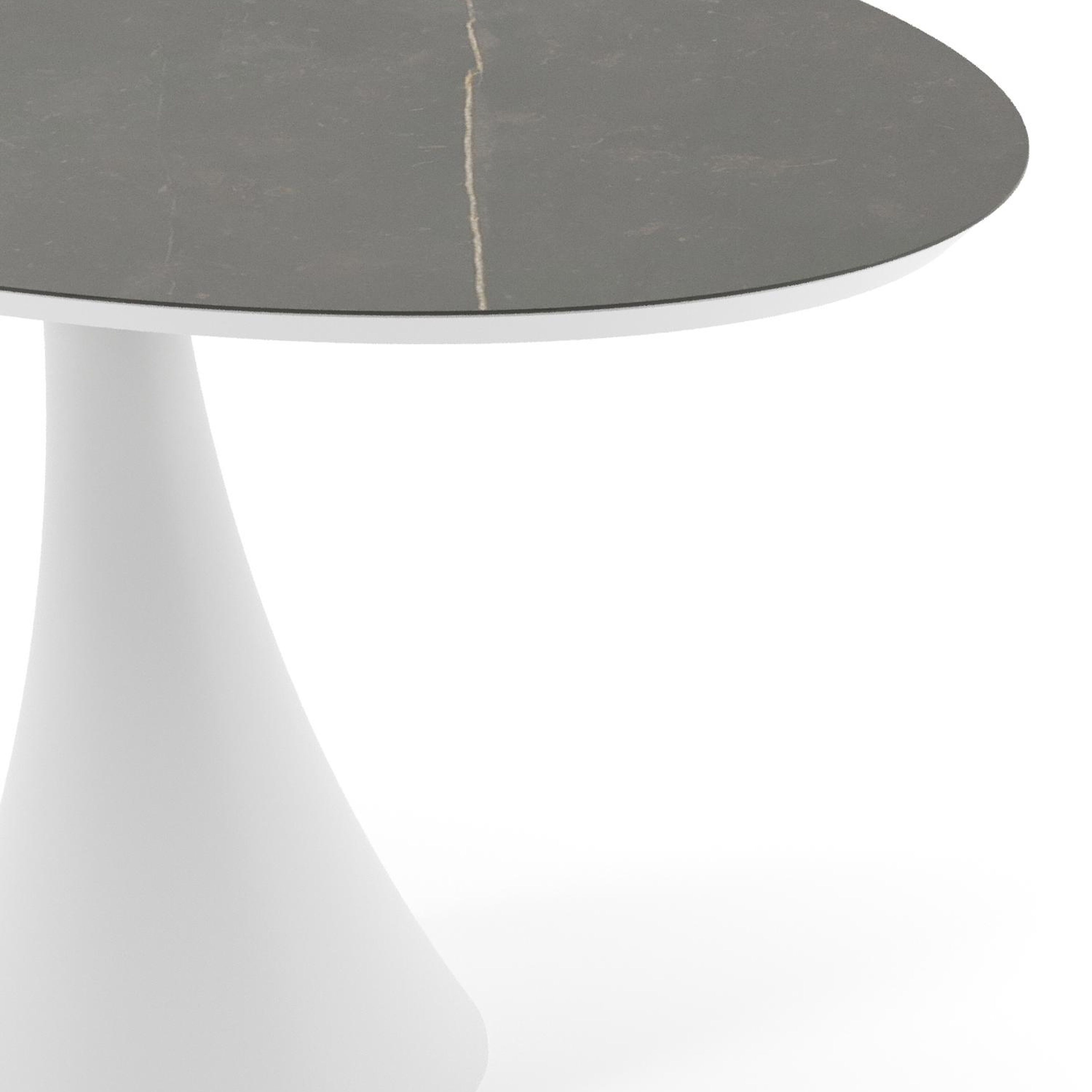 Table de jardin Fano oval en aluminium blanc et céramique pleine Calatorao - Lg. 140 x Lrg. 80 x Haut. 74.5 cm | Exterioo mobilier de jardin