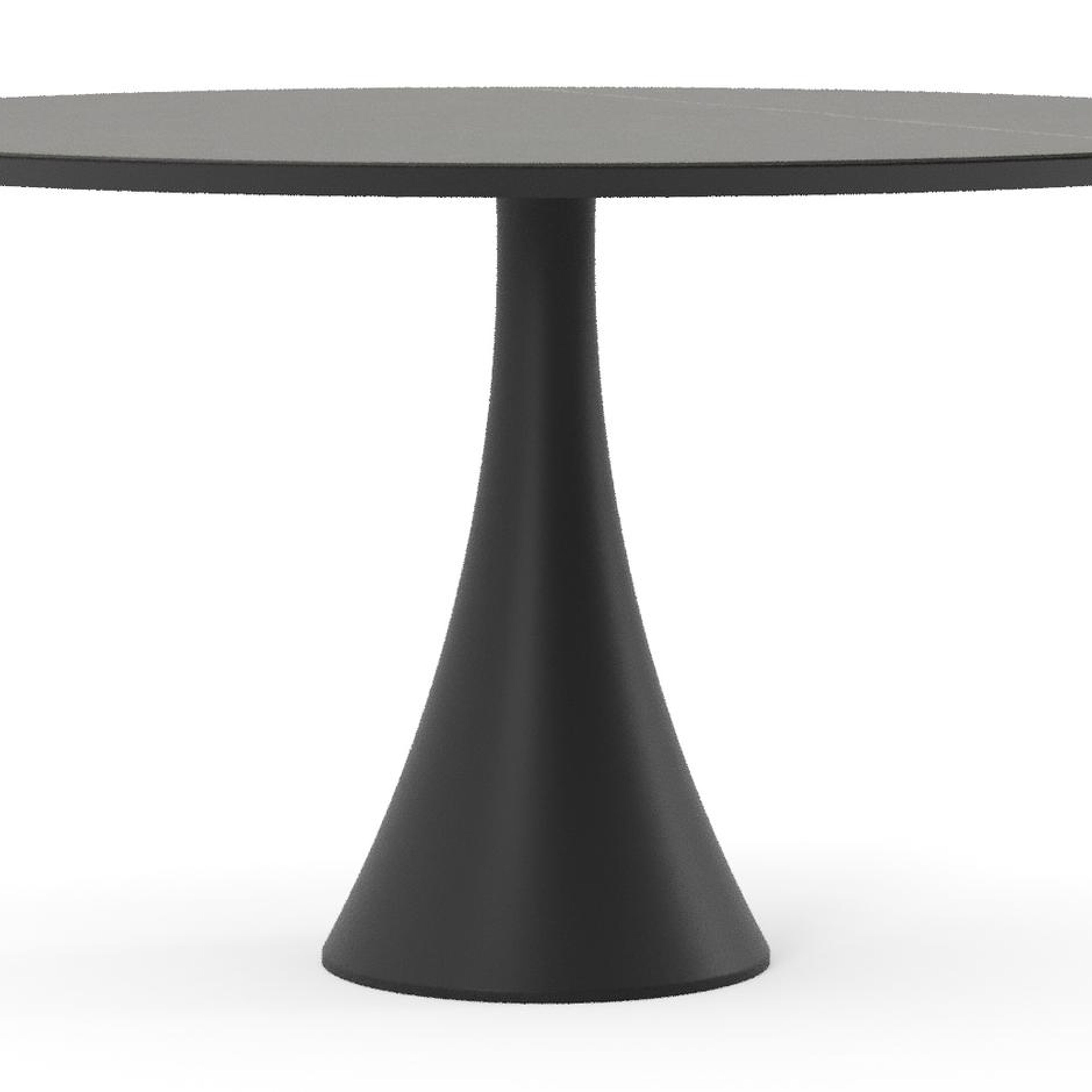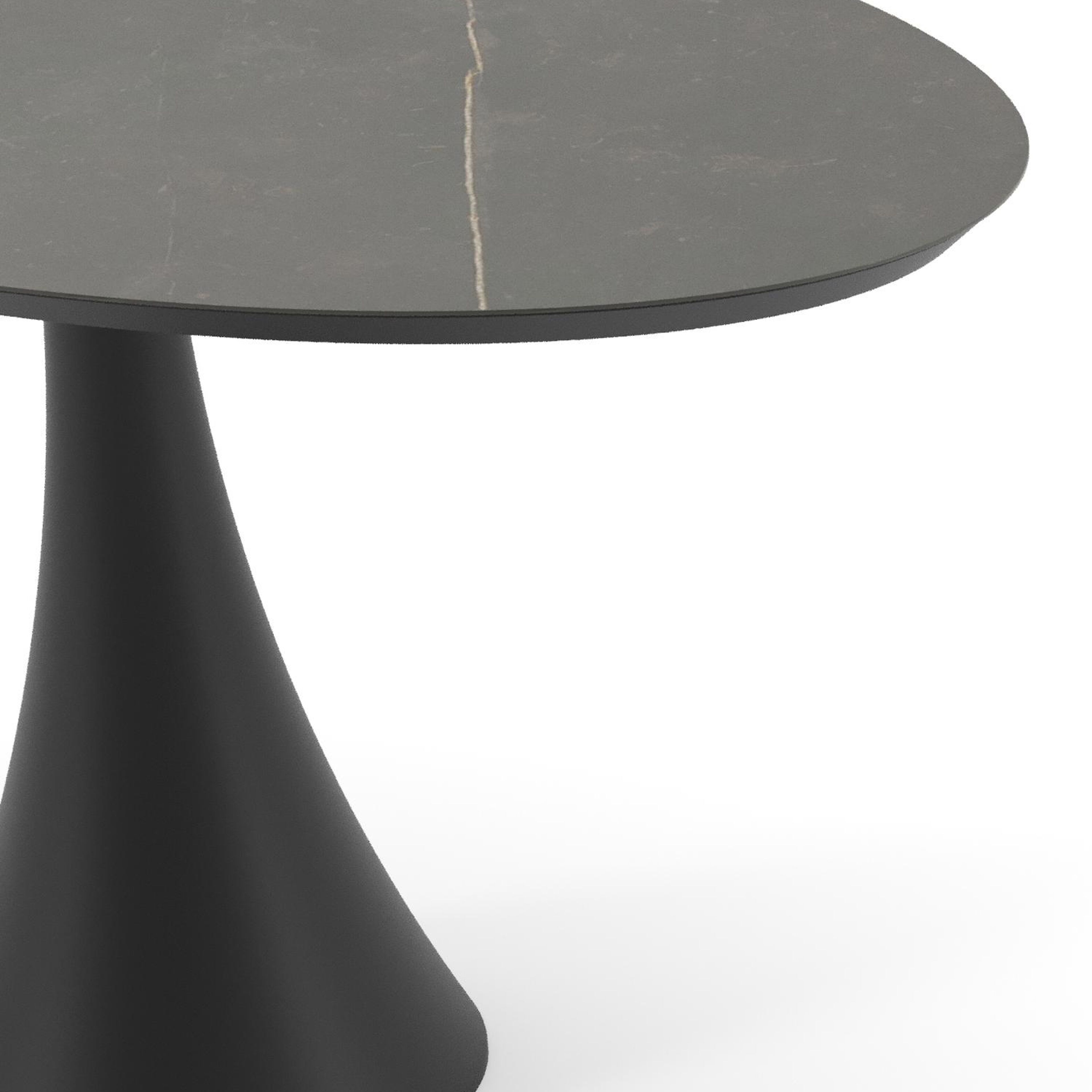 Le Calatorao est inspiré d’une pierre calcaire grise. Le plateau de table présente un effet de marbre apaisant avec ses veines dorées sur des nuances de couleur gris foncé.