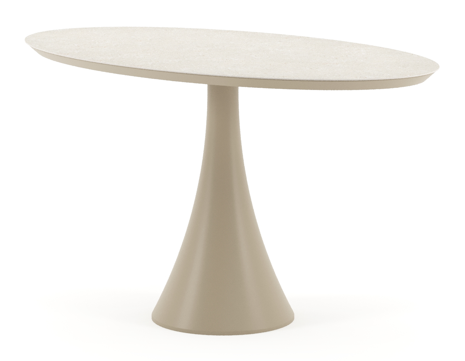 Table de jardin Fano oval en aluminium beige et céramique pleine Shilin - Lg. 140 x Lrg. 80 x Haut. 74.5 cm | Exterioo mobilier de jardin