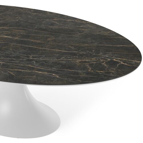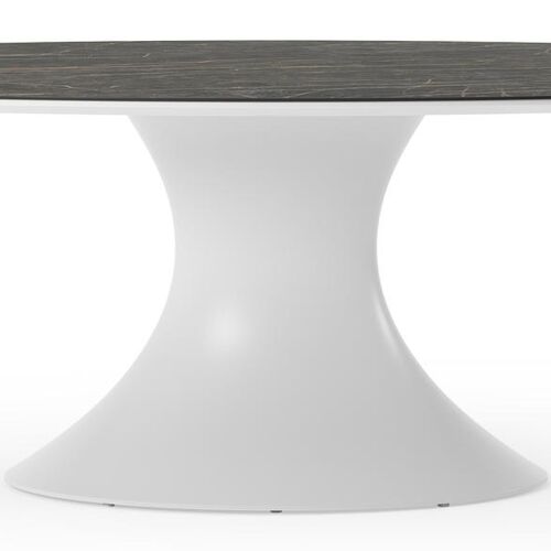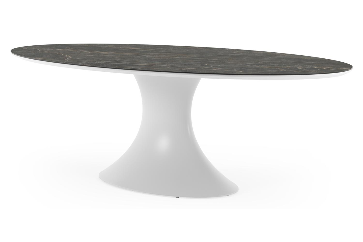 Table de jardin Fano ovale en aluminium blanc et céramique pleine Black Obsession - Lg. 240 x Lrg. 135 x Haut. 75 cm | Exterioo