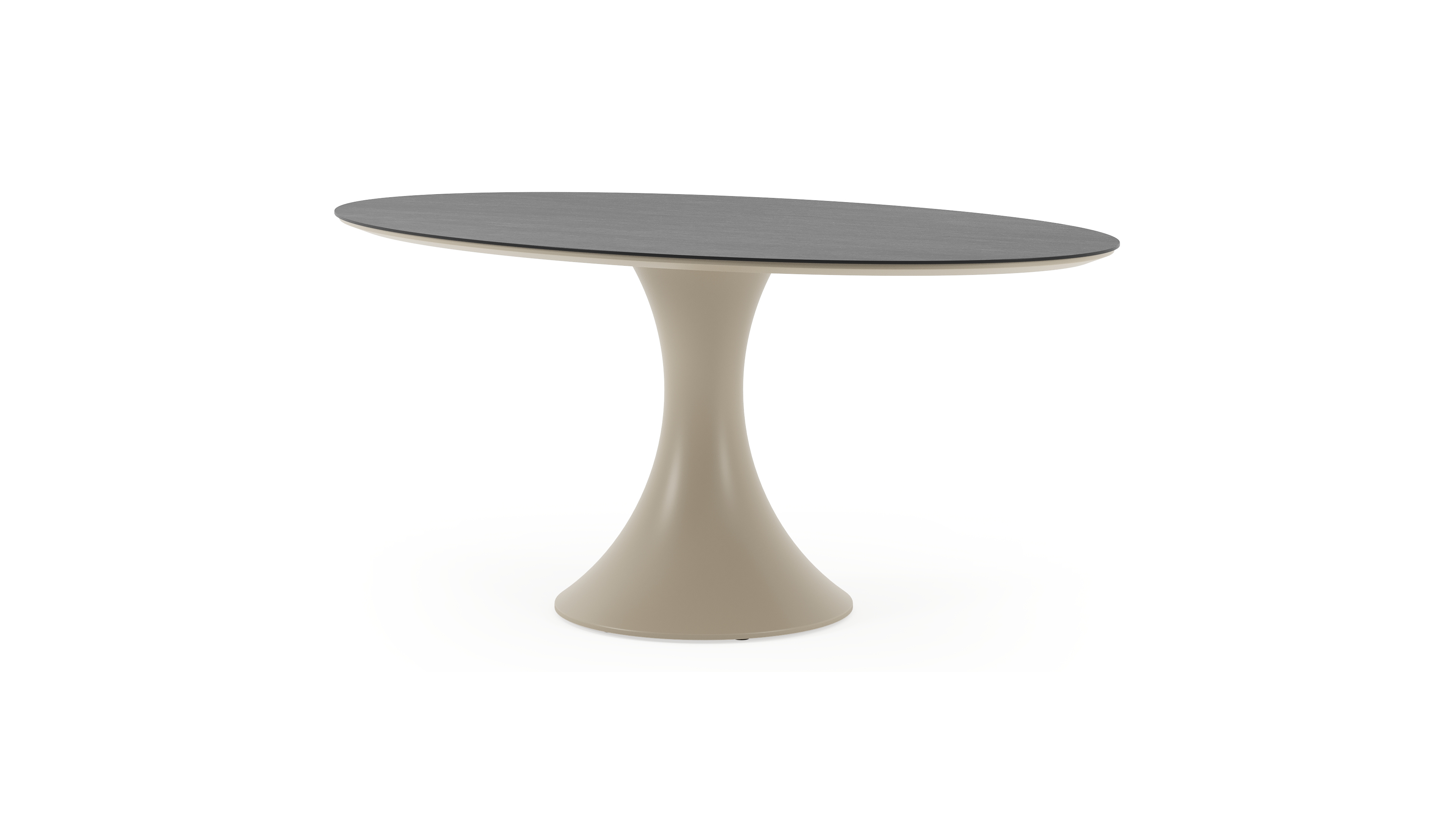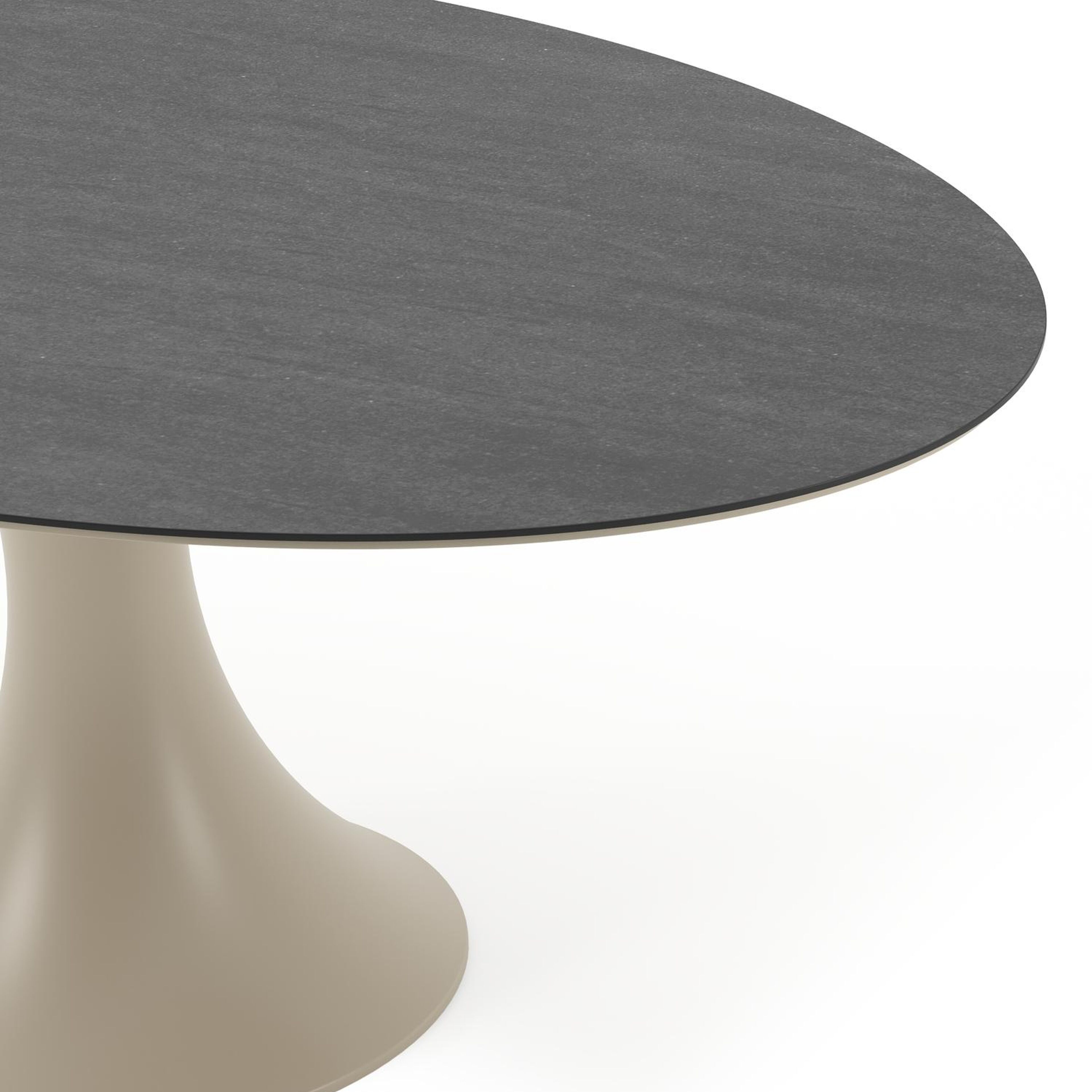 Table de jardin Fano ovale en aluminium beige et céramique pleine Basalt Black - Lg. 180 x Lrg. 110 x Haut. 75 cm | Exterioo mobilier de jardin