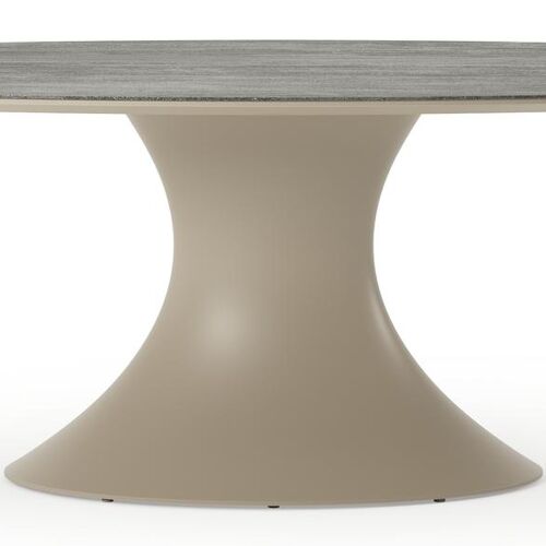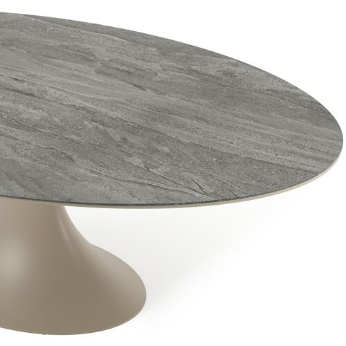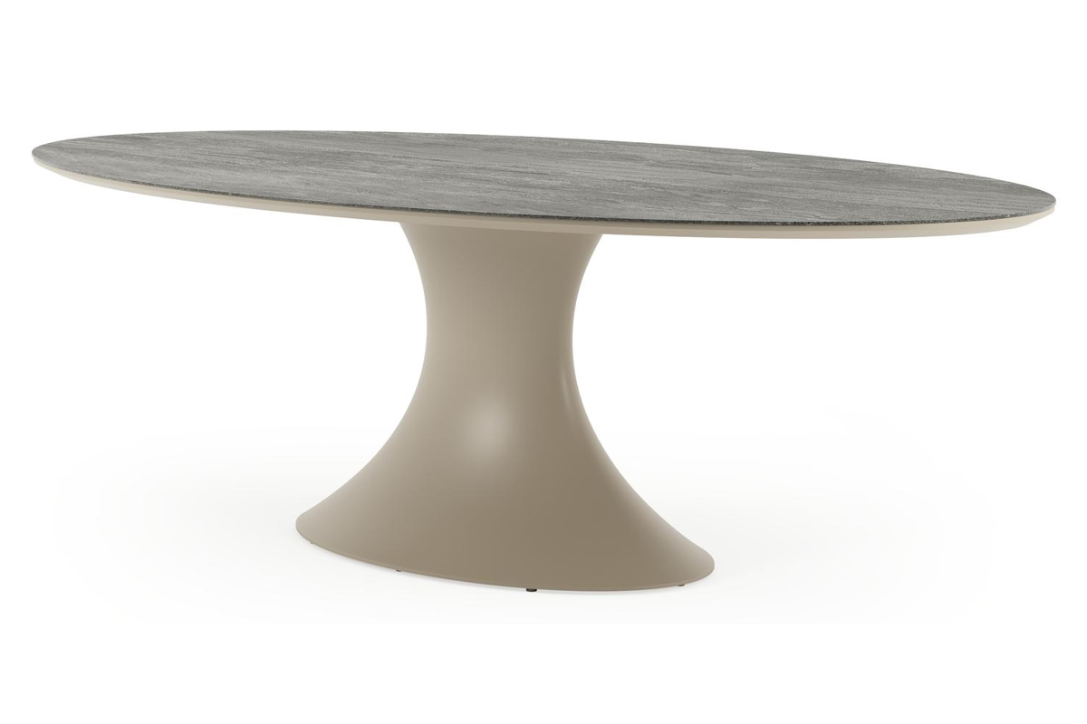 Table de jardin Fano ovale en aluminium beige et céramique pleine Aspen Grey - Lg. 240 x Lrg. 135 x Haut. 75 cm | Exterioo
