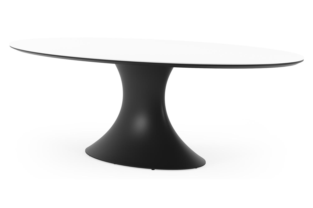 Table de jardin Fano ovale en aluminium noir et céramique pleine Arctic White - Lg. 240 x Lrg. 135 x Haut. 75 cm | Exterioo