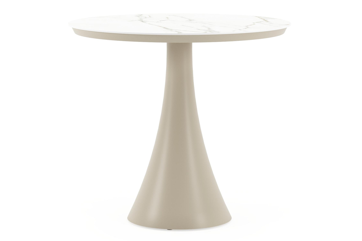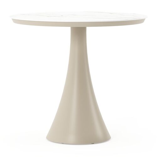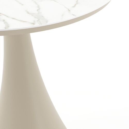 Table de jardin Fano ronde en aluminium beige et céramique pleine Calacatta - Diam. 85 x Haut. 75 cm | Exterioo