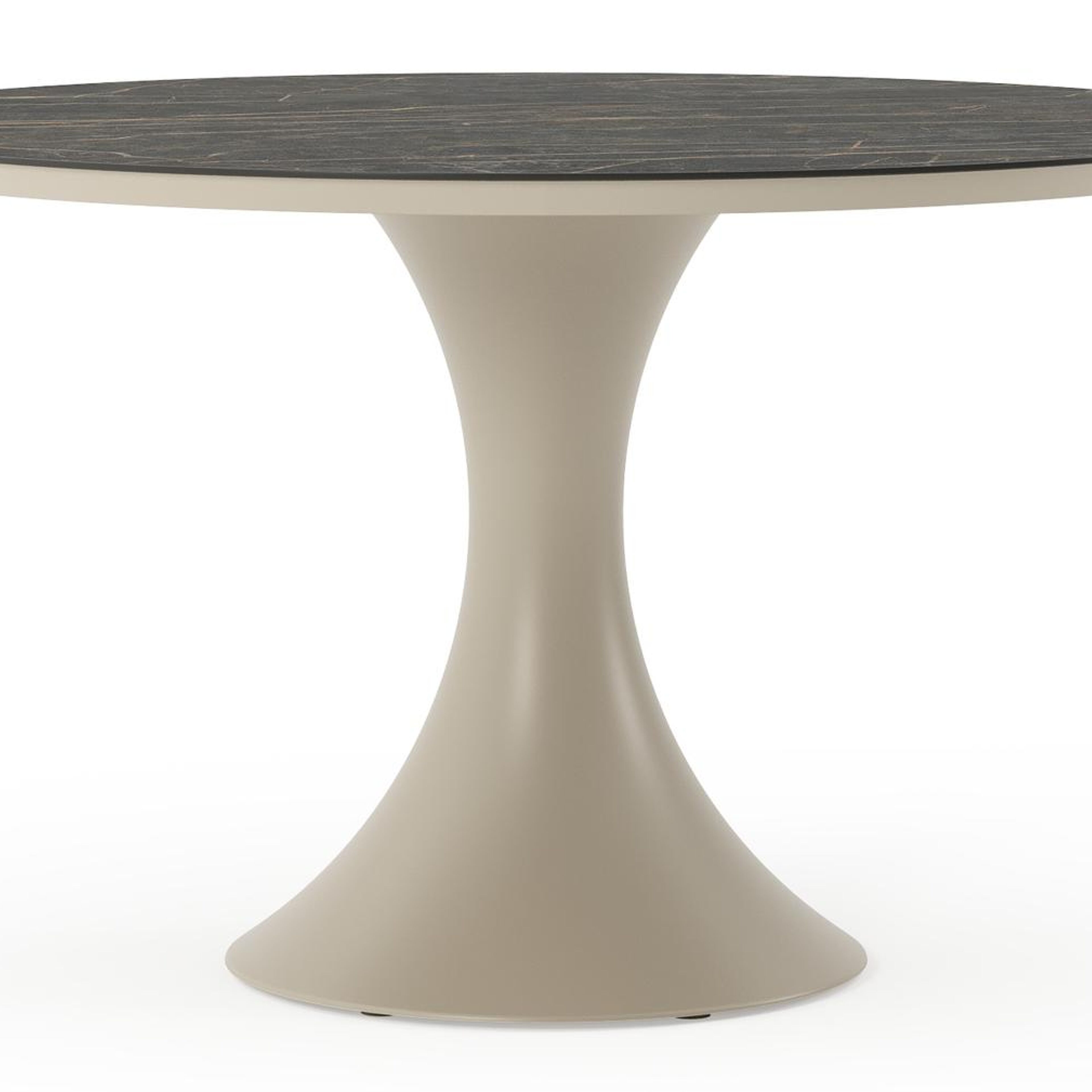 Table de jardin Fano ronde en aluminium beige et céramique pleine Black Obsession - Diam. 130 x Haut. 75 cm | Exterioo mobilier de jardin