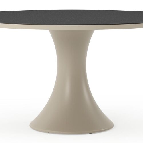 Table de jardin Fano ronde en aluminium beige et céramique pleine Nero Black - Diam. 148 x Haut. 75 cm | Exterioo