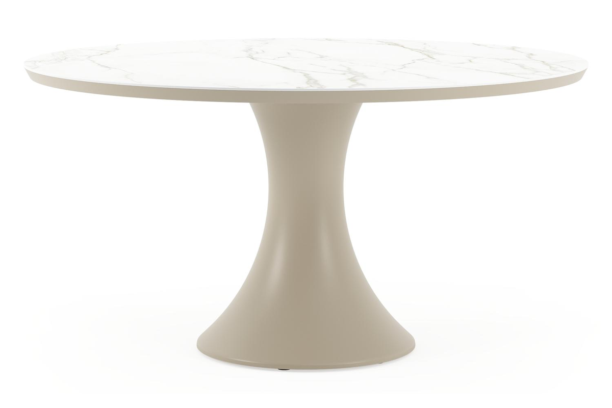 Table de jardin Fano ronde en aluminium beige et céramique pleine Calacatta - Diam. 148 x Haut. 75 cm | Exterioo
