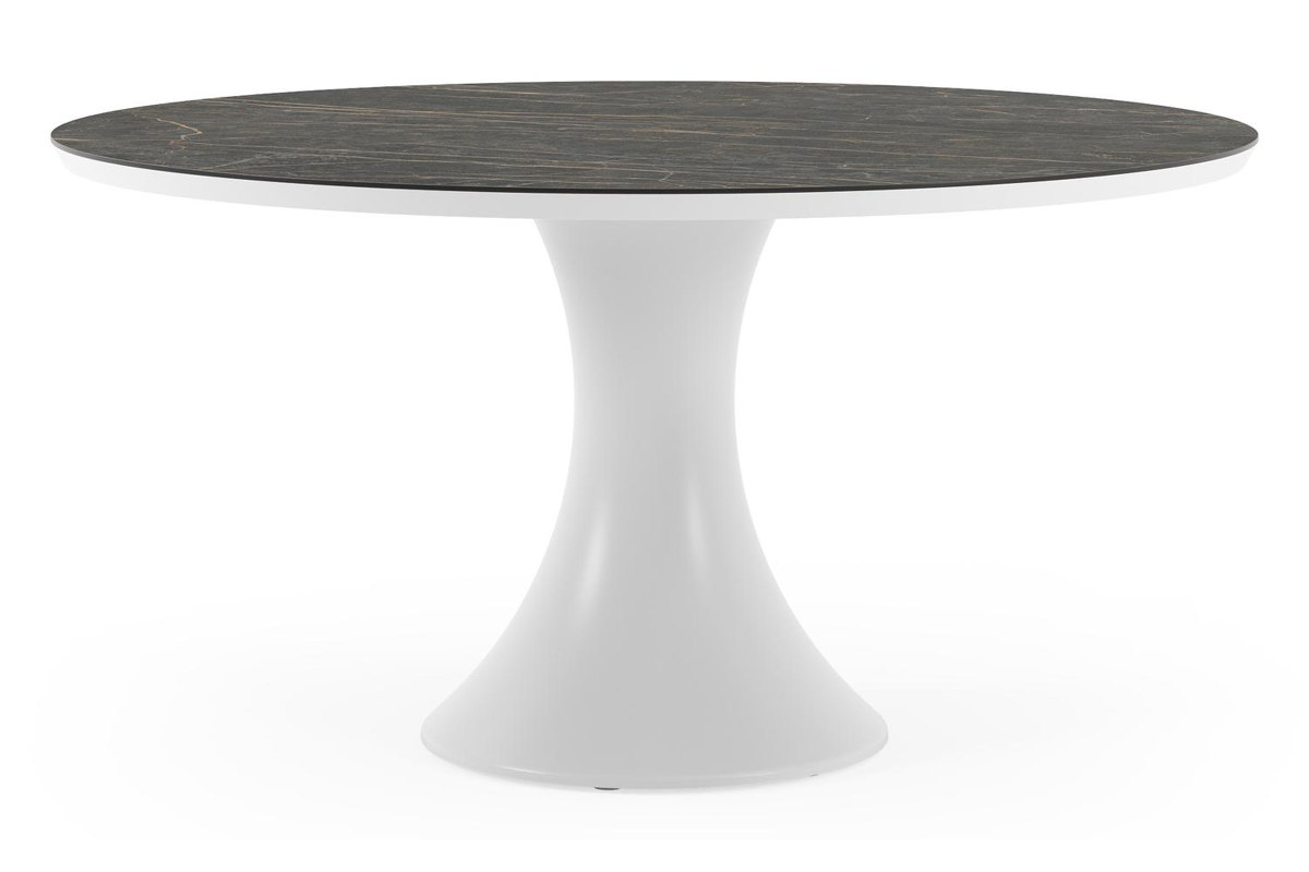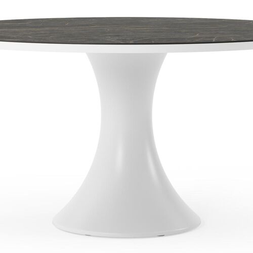 Table de jardin Fano ronde en aluminium blanc et céramique pleine Black Obsession - Diam. 148 x Haut. 75 cm | Exterioo