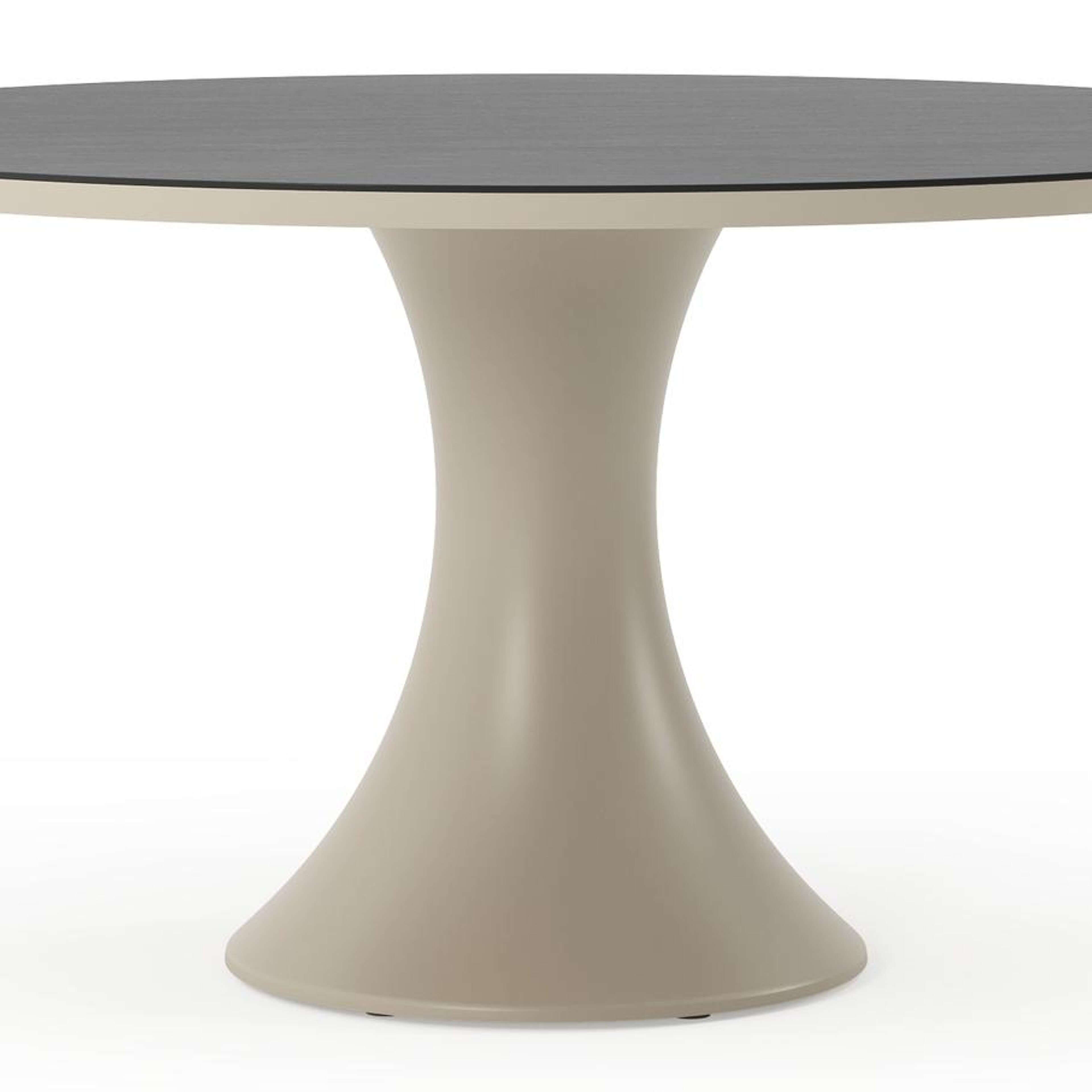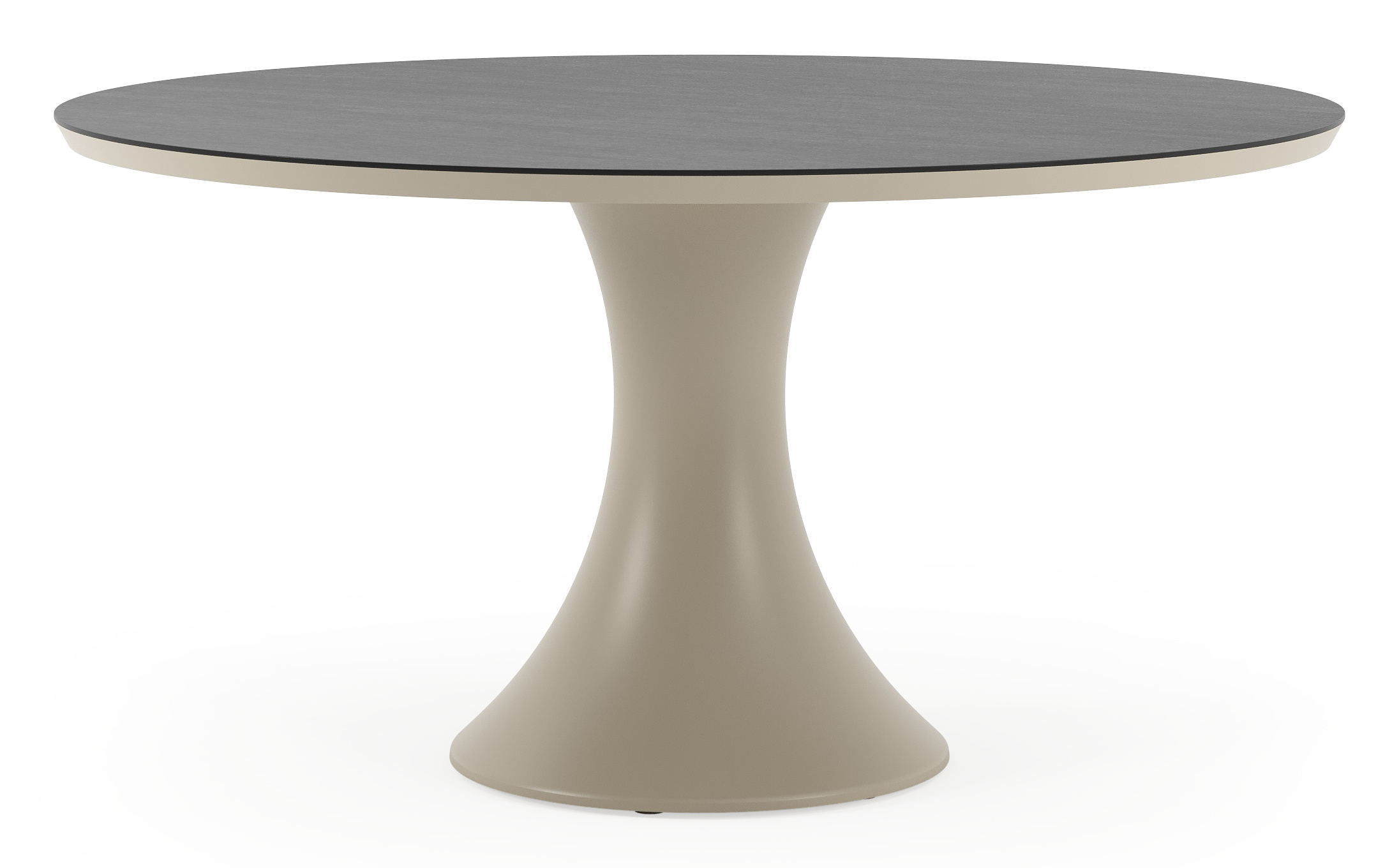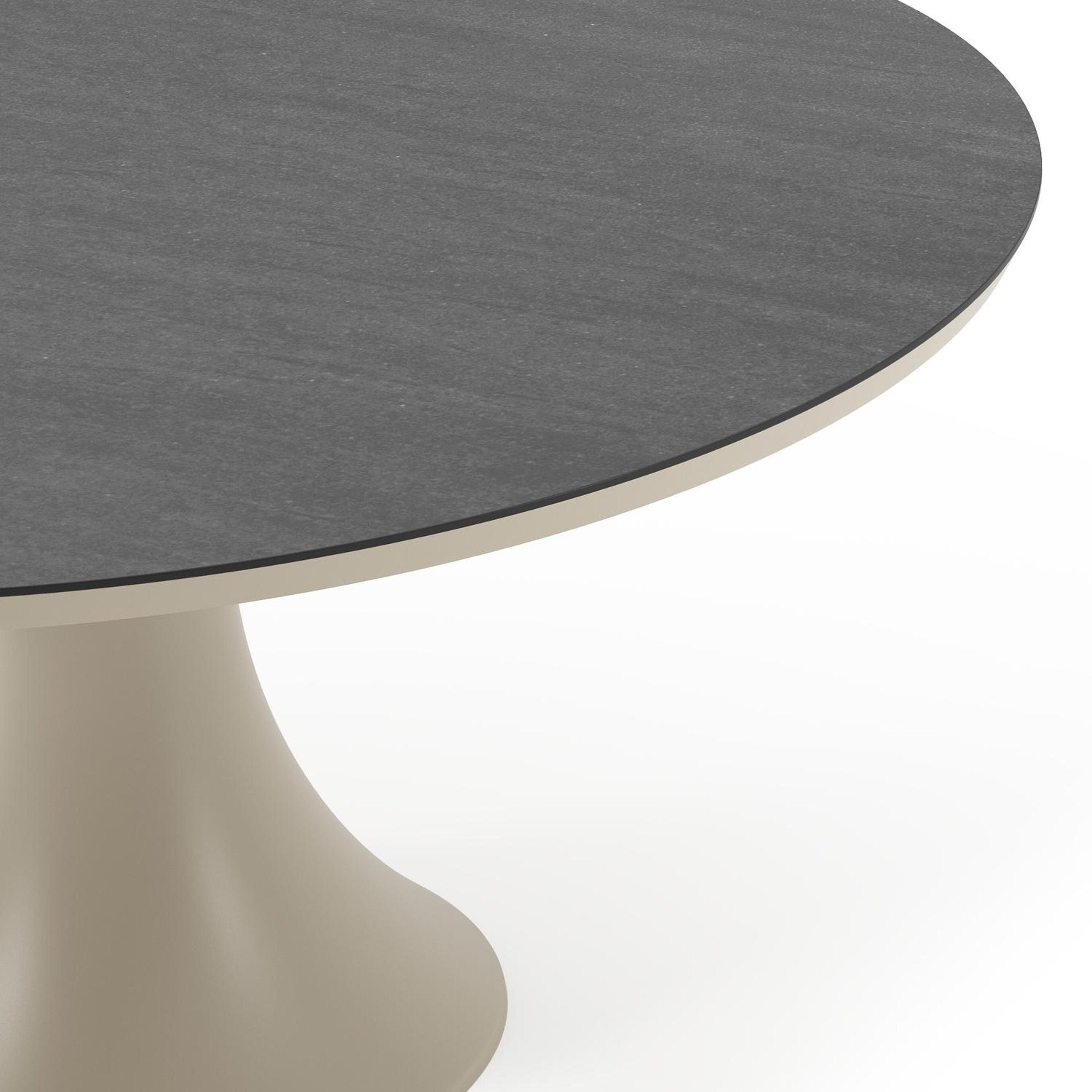 Table de jardin Fano ronde en aluminium beige et céramique pleine Basalt Black - Diam. 148 x Haut. 75 cm | Exterioo mobilier de jardin
