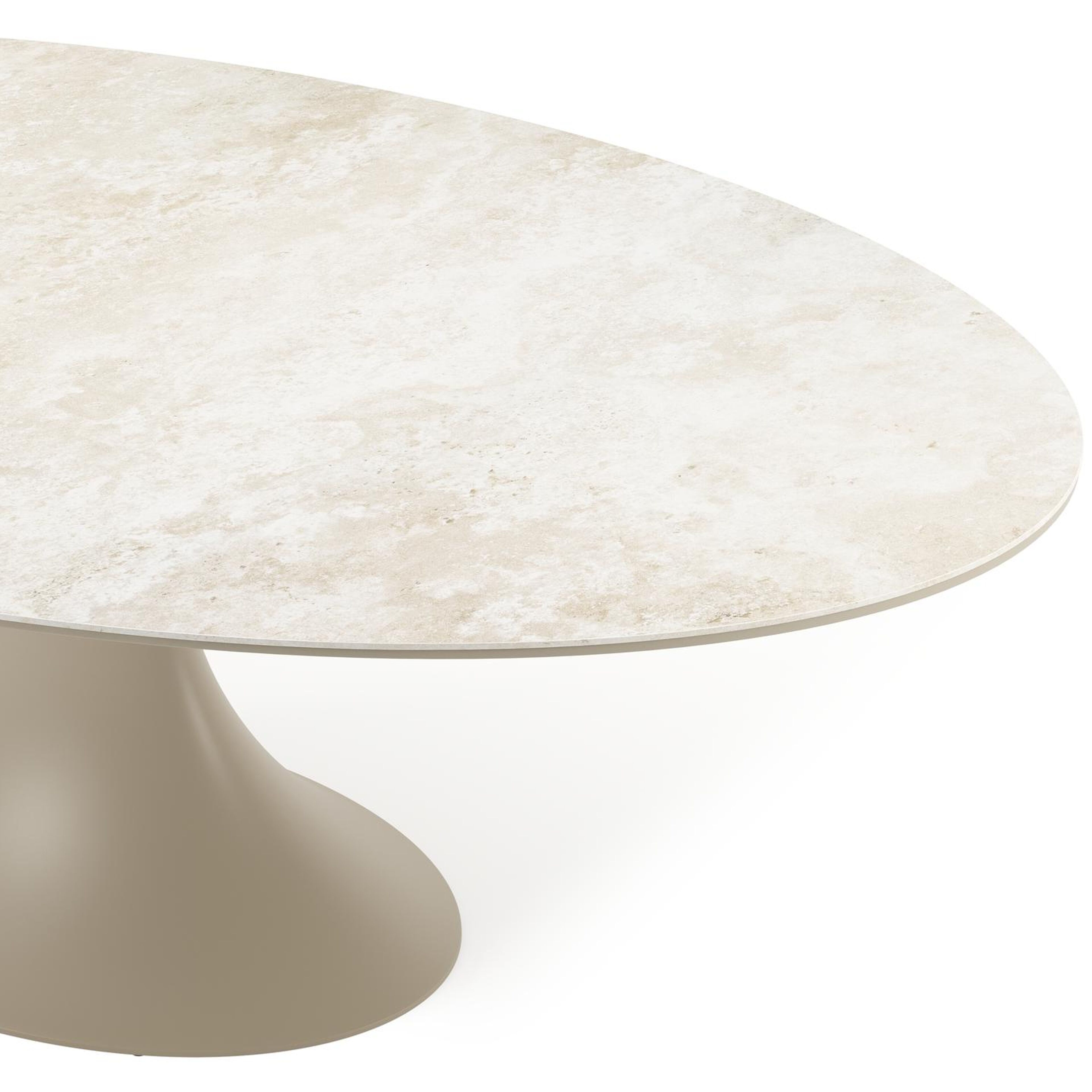 La collection Fano se distingue par sa table ovale très tendance, dotée d'un pied en trompette caractéristique. Cette table contemporaine n'offre pas seulement un look à la mode, mais crée également une expérience de table agréable, où les gens peuvent s'asseoir l'un en face de l'autre.
