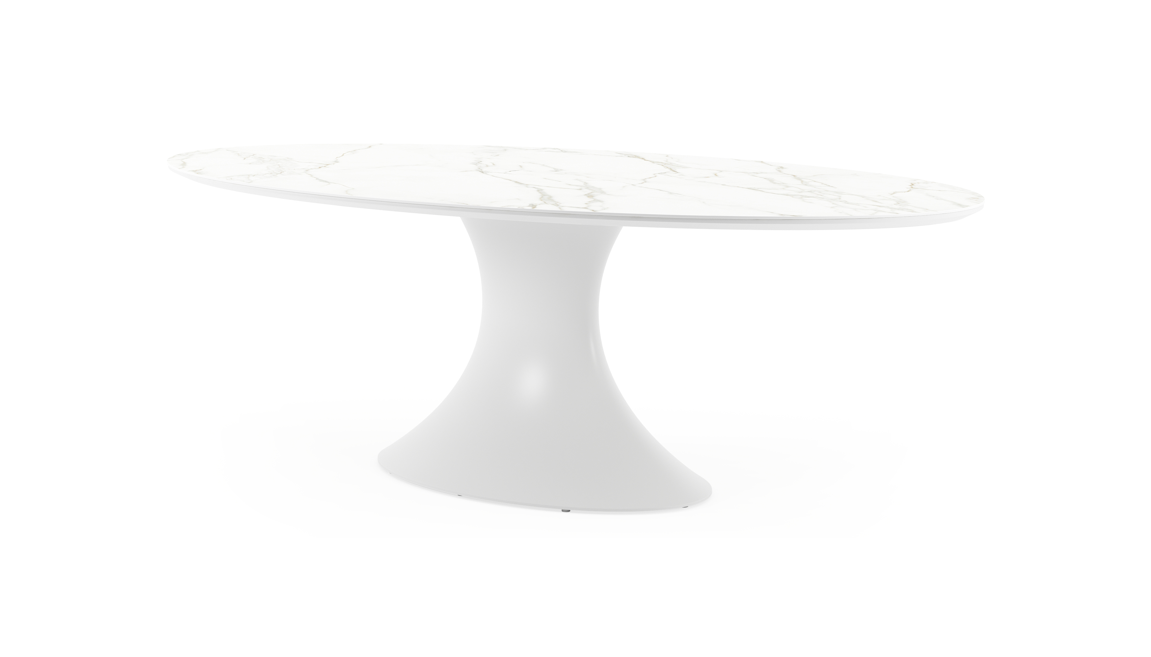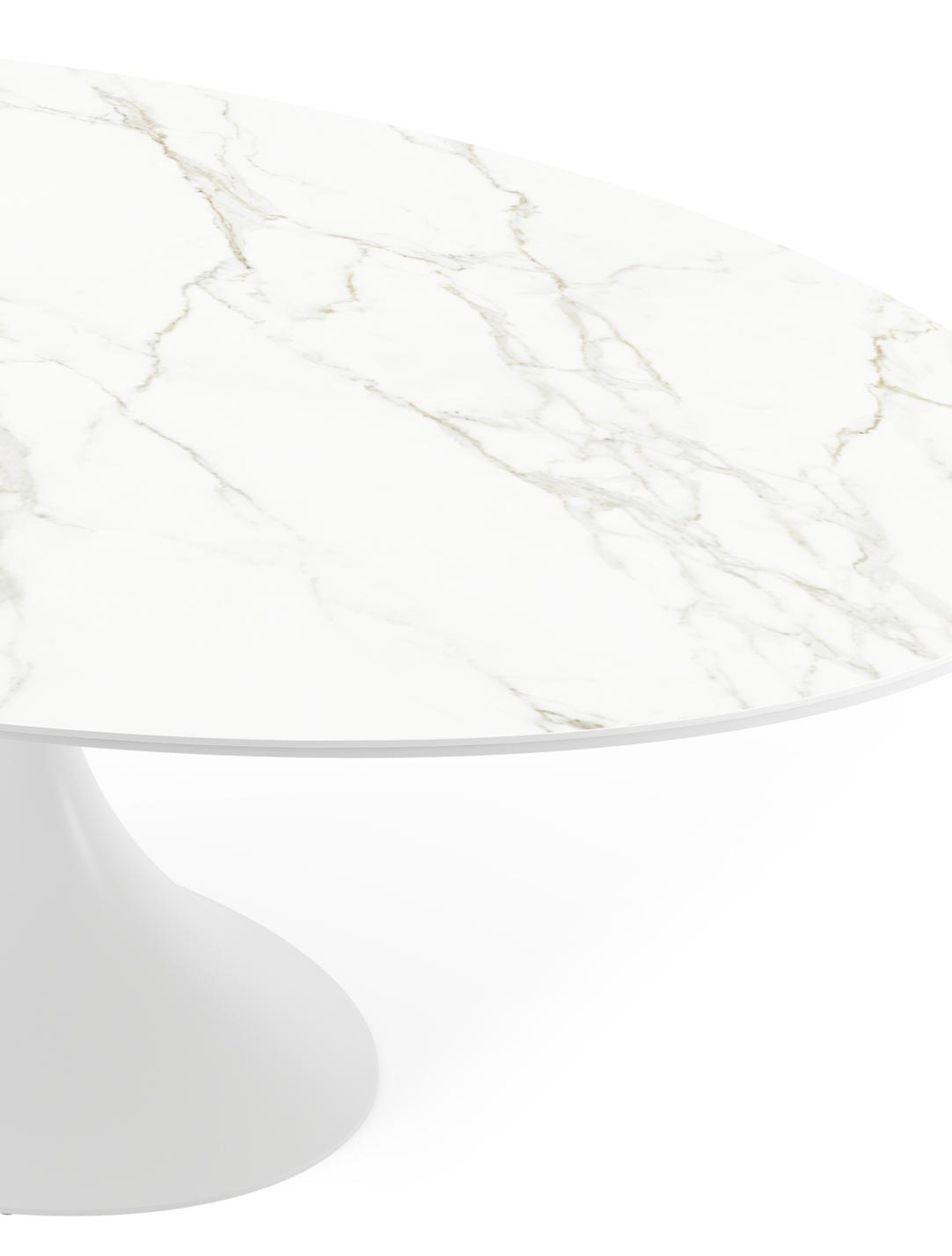 Le Calacatta est un plateau de table dont la couleur de base est le blanc, doté de veines grises produisant un effet de marbre caractéristique.