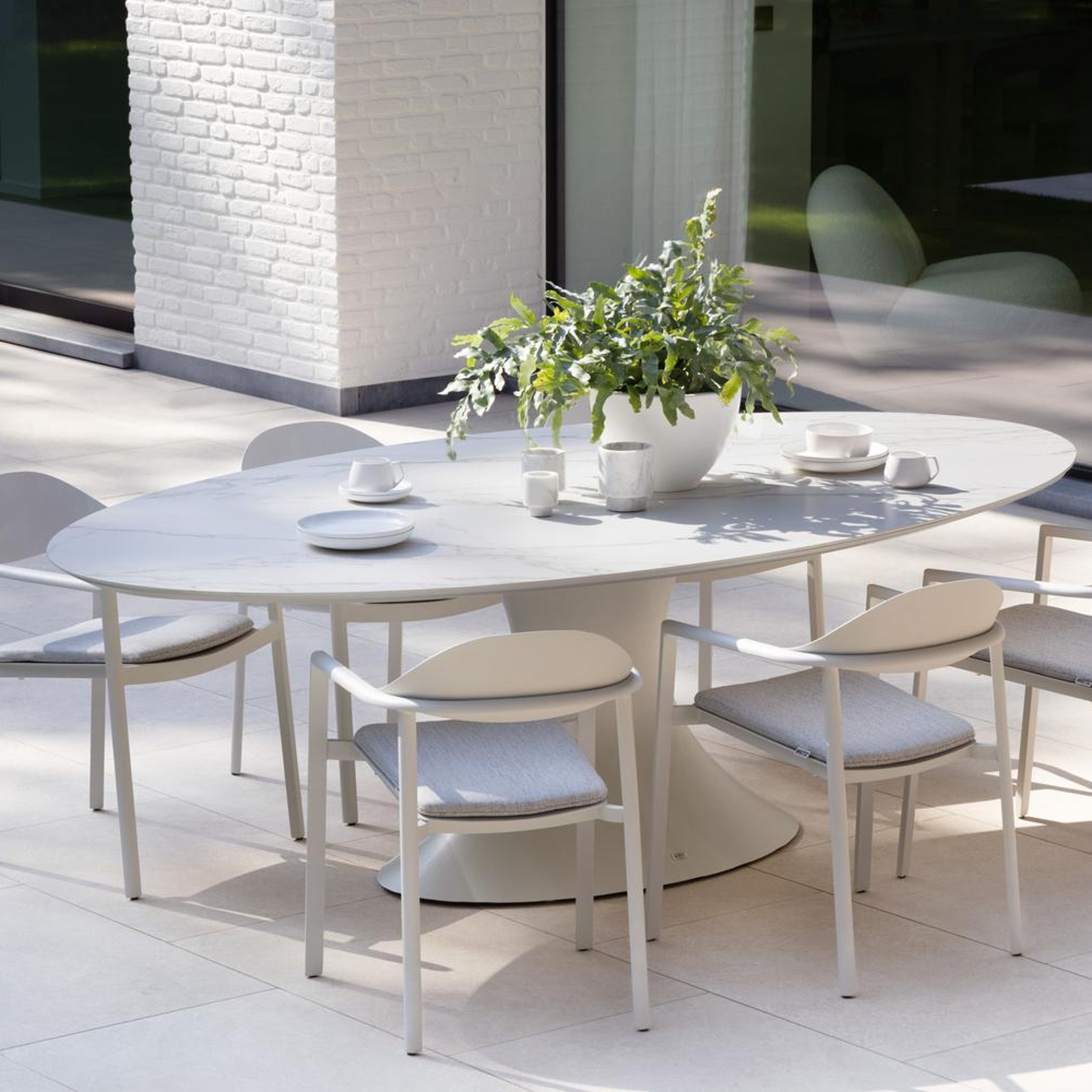 Un plateau de table entièrement en céramique consiste en une plaque en céramique qui est cuite à une température extrêmement élevée. Ce matériau est très solide et résiste aux coups. Un plateau de table entièrement en céramique résiste au gel, à la chaleur et aux rayures, et est facile à nettoyer.