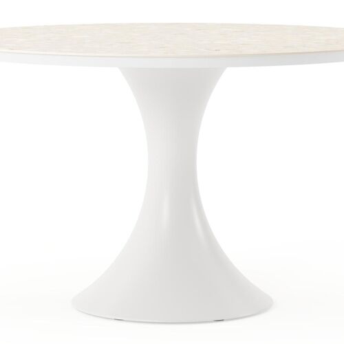 La collection Fano se distingue par sa table ronde très tendance, dotée d'un pied en trompette caractéristique. Cette table contemporaine n'offre pas seulement un look à la mode, mais crée également une expérience de table agréable, où les gens peuvent s'asseoir l'un en face de l'autre.