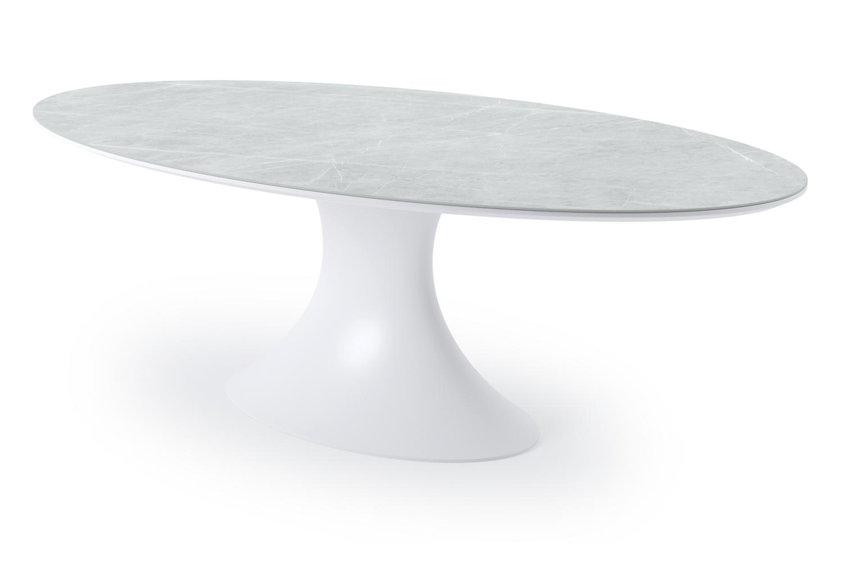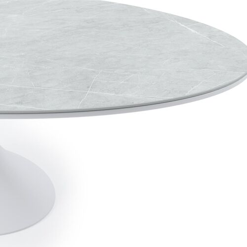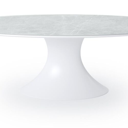 La table Fano ovale est dotée d’un élégant pied central caractéristique. L’armature est en aluminium, un matériau léger mais robuste et inoxydable qui convient très bien aux meubles de jardin. Cette table est dotée d’un plateau Zaha Stone. Un plateau de table aux nuances de couleur gris industriel et aux grandes lignes entrelacées. L’avantage des plateaux de table en céramique pleine est qu’ils résistent aux rayures ainsi qu’à toutes les conditions météorologiques.
