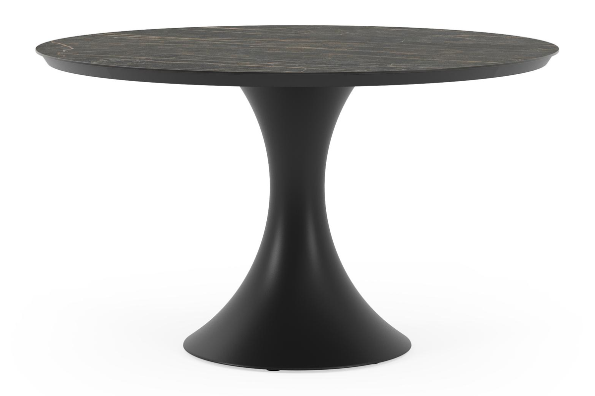 Table de jardin Fano en aluminium noir et céramique pleine black obsession - Dia. 130 x H 75 cm | Exterioo