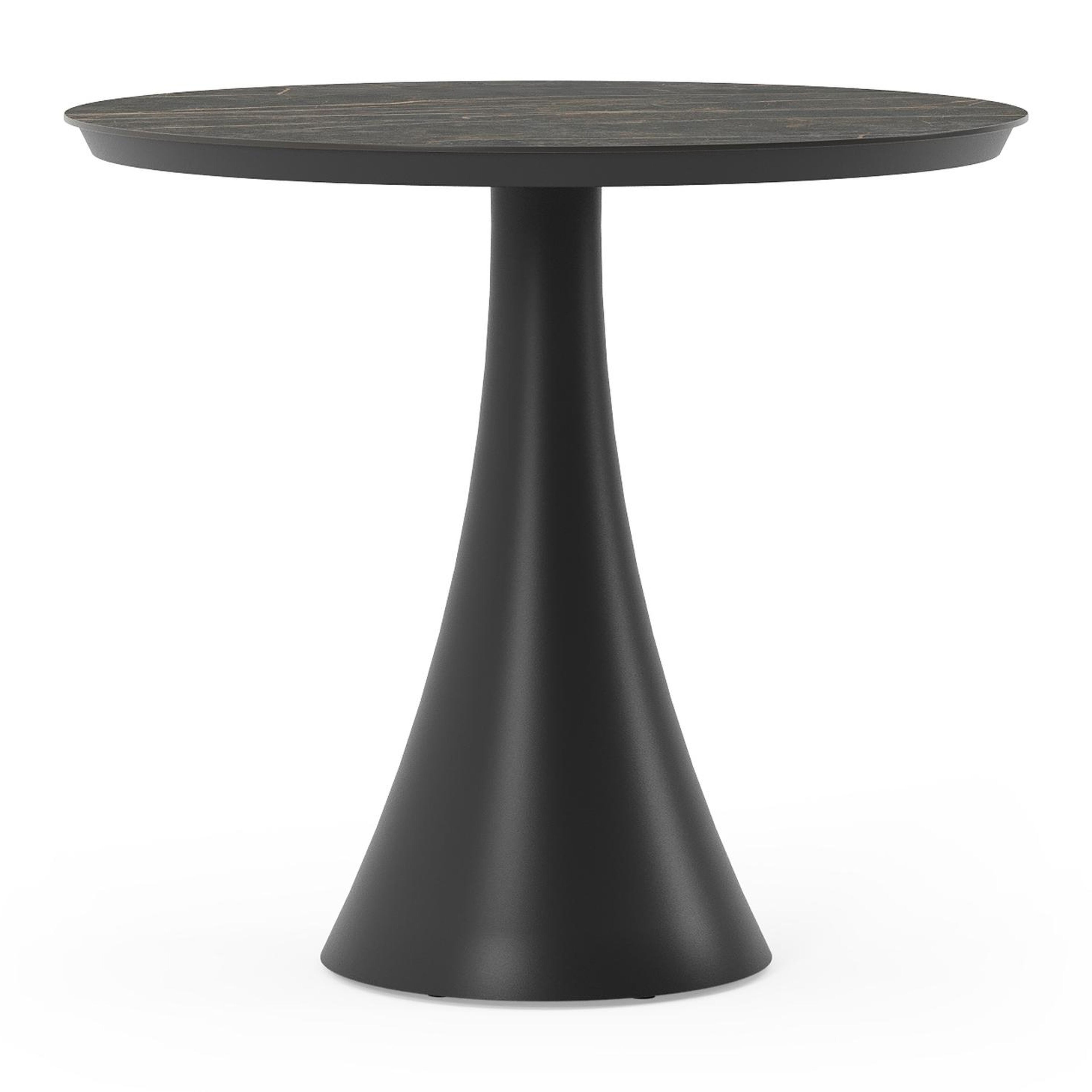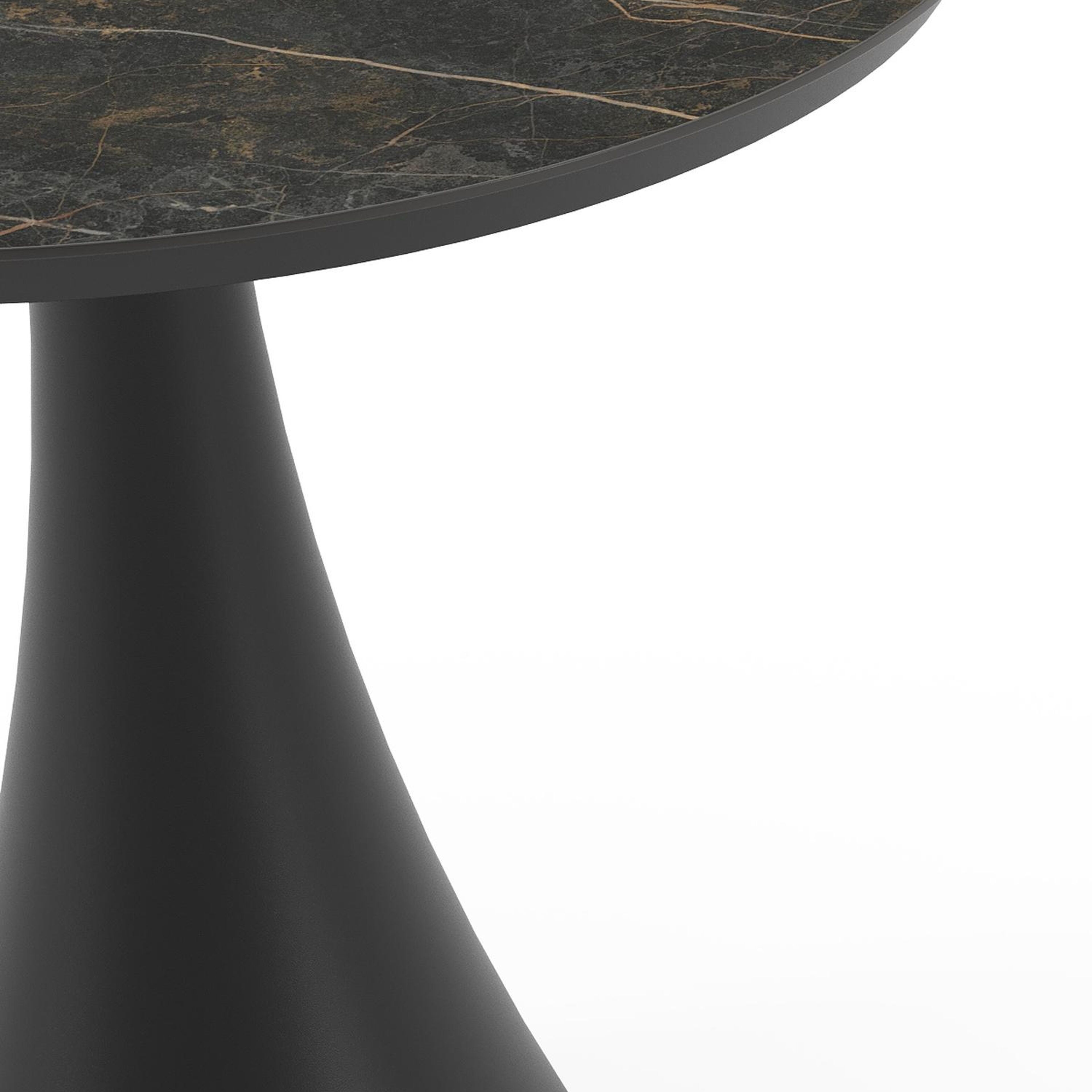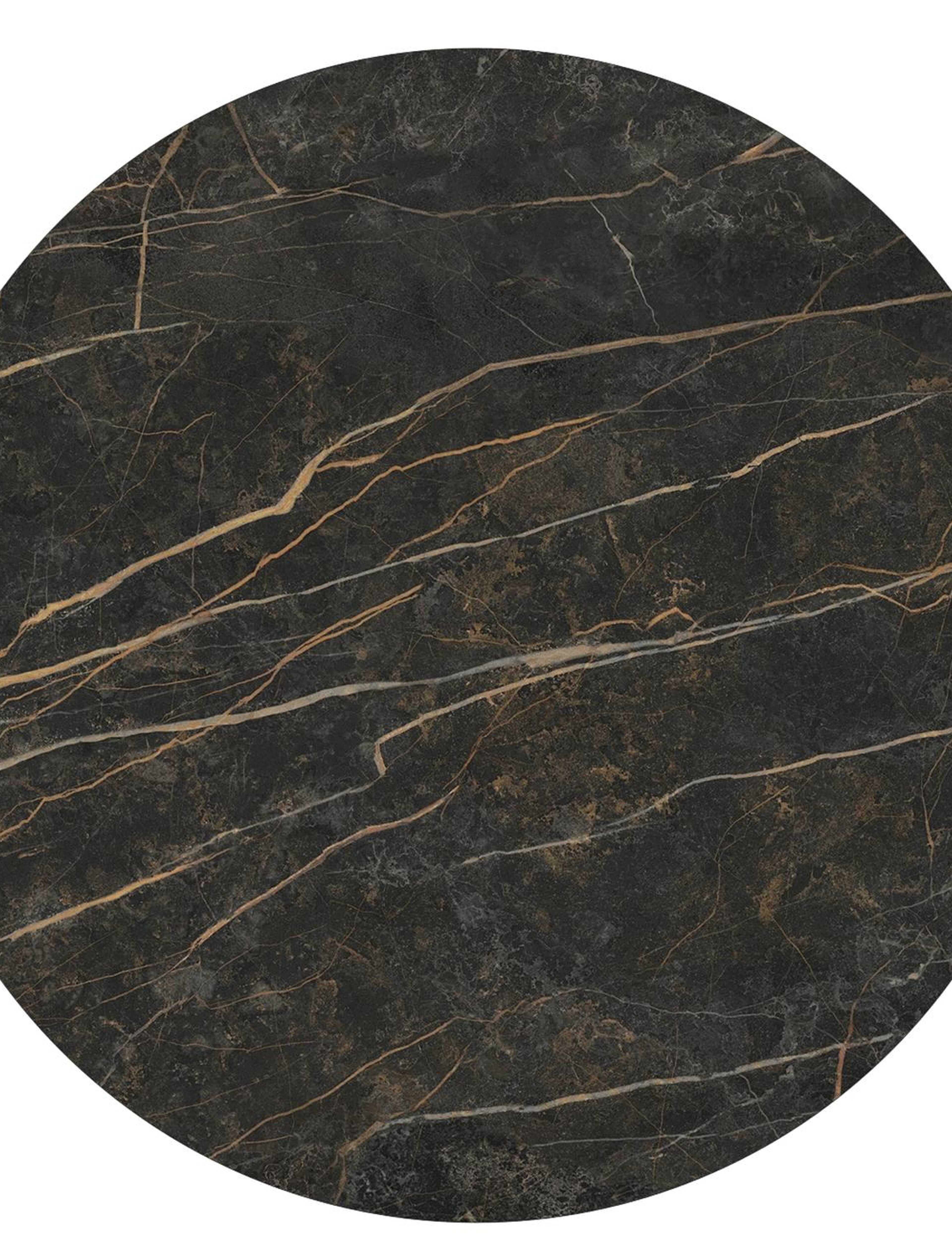 La table Fano ronde est un modèle tendance avec son pied en trompette caractéristique. De plus, vous passerez toujours un moment convivial à une table ronde, car tout le monde se voit. L’armature est en aluminium, un matériau léger mais robuste et inoxydable qui convient très bien aux meubles de jardin. Cette table est dotée d’un plateau Black Obsession. Un véritable accroche-regard pour ceux qui aiment quelque chose de plus luxueux. La surface du plateau est noire et des veines jaunes or créent un superbe effet de marbre. L’avantage des plateaux de table en céramique pleine est qu’ils résistent aux rayures ainsi qu’à toutes les conditions météorologiques.