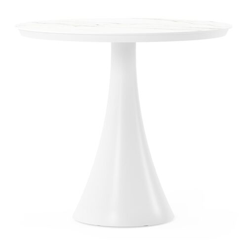 La table Fano ronde est un modèle tendance avec son pied en trompette caractéristique. De plus, vous passerez toujours un moment convivial à une table ronde, car tout le monde se voit. L’armature est en aluminium, un matériau léger mais robuste et inoxydable qui convient très bien aux meubles de jardin. Cette table est dotée d’un plateau Calacatta. La base du plateau est blanche et des veines grises créent un superbe effet de marbre. L’avantage des plateaux de table en céramique pleine est qu’ils résistent aux rayures ainsi qu’à toutes les conditions météorologiques.