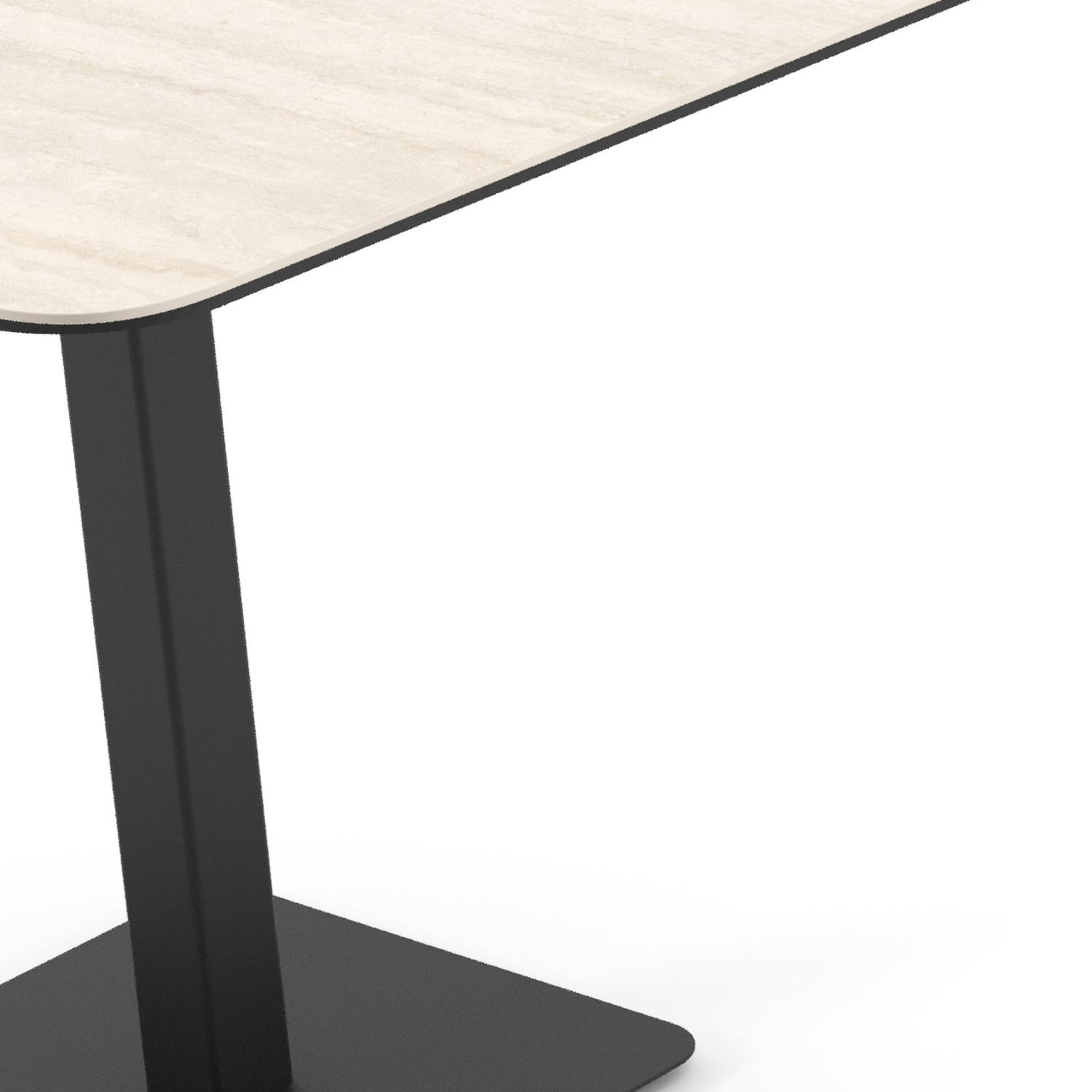 Table de jardin Fano inclinable carré arrondi en aluminium noir et céramique pleine Travertino Bianco - Lg. 80 x Lrg. 80 x Haut. 72.5 cm | Exterioo mobilier de jardin