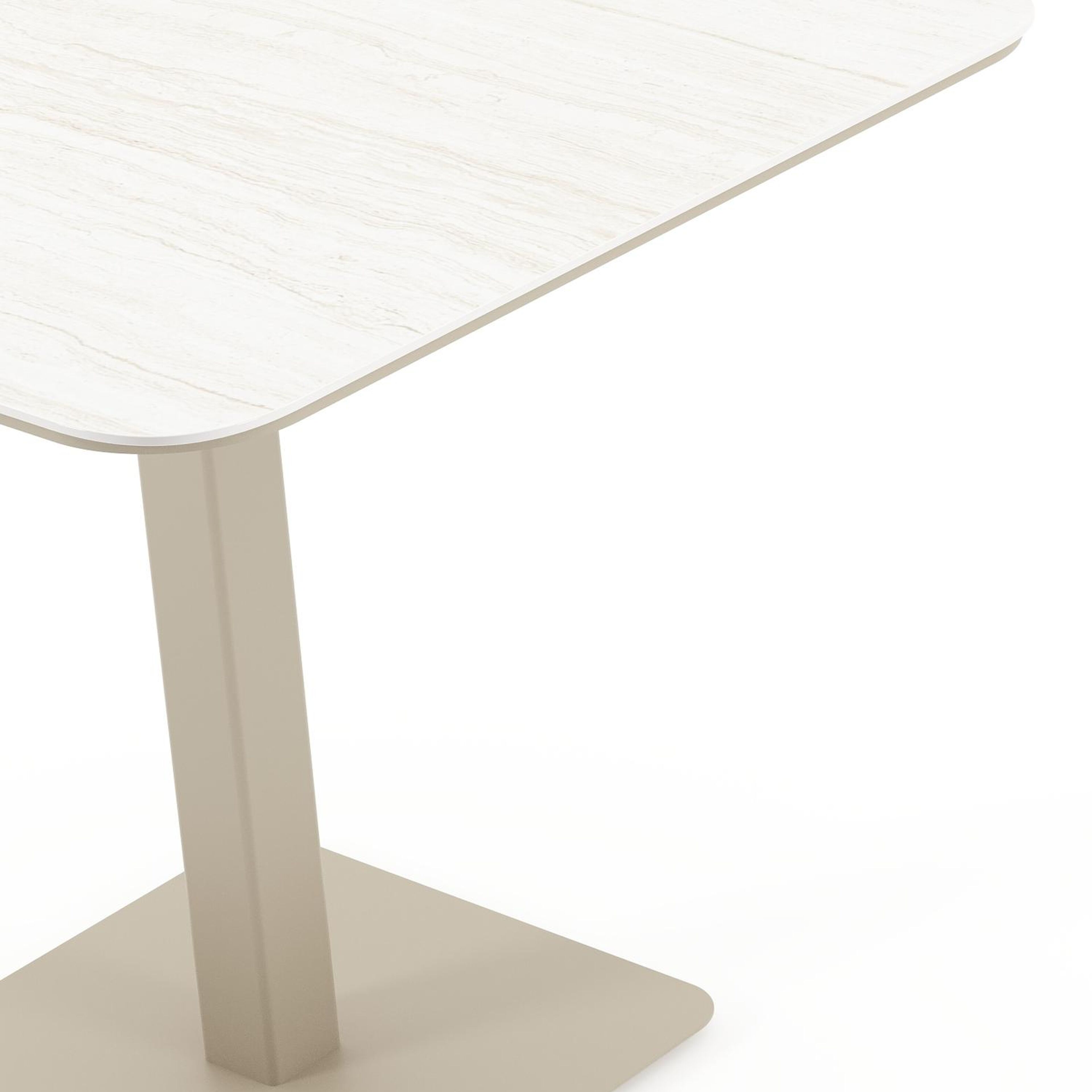 Un plateau de table entièrement en céramique consiste en une plaque en céramique qui est cuite à une température extrêmement élevée. Ce matériau est très solide et résiste aux coups. Un plateau de table entièrement en céramique résiste au gel, à la chaleur et aux rayures, et est facile à nettoyer.