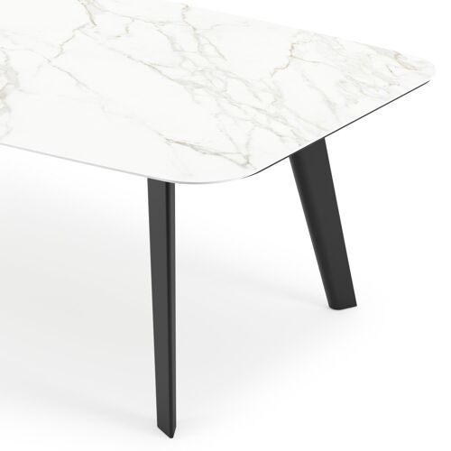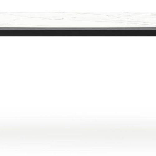 Table de jardin Lacrima forme de bateau en aluminium noir et céramique pleine Calacatta - Lg. 255 x Lrg. 115 x Haut. 73 cm | Exterioo