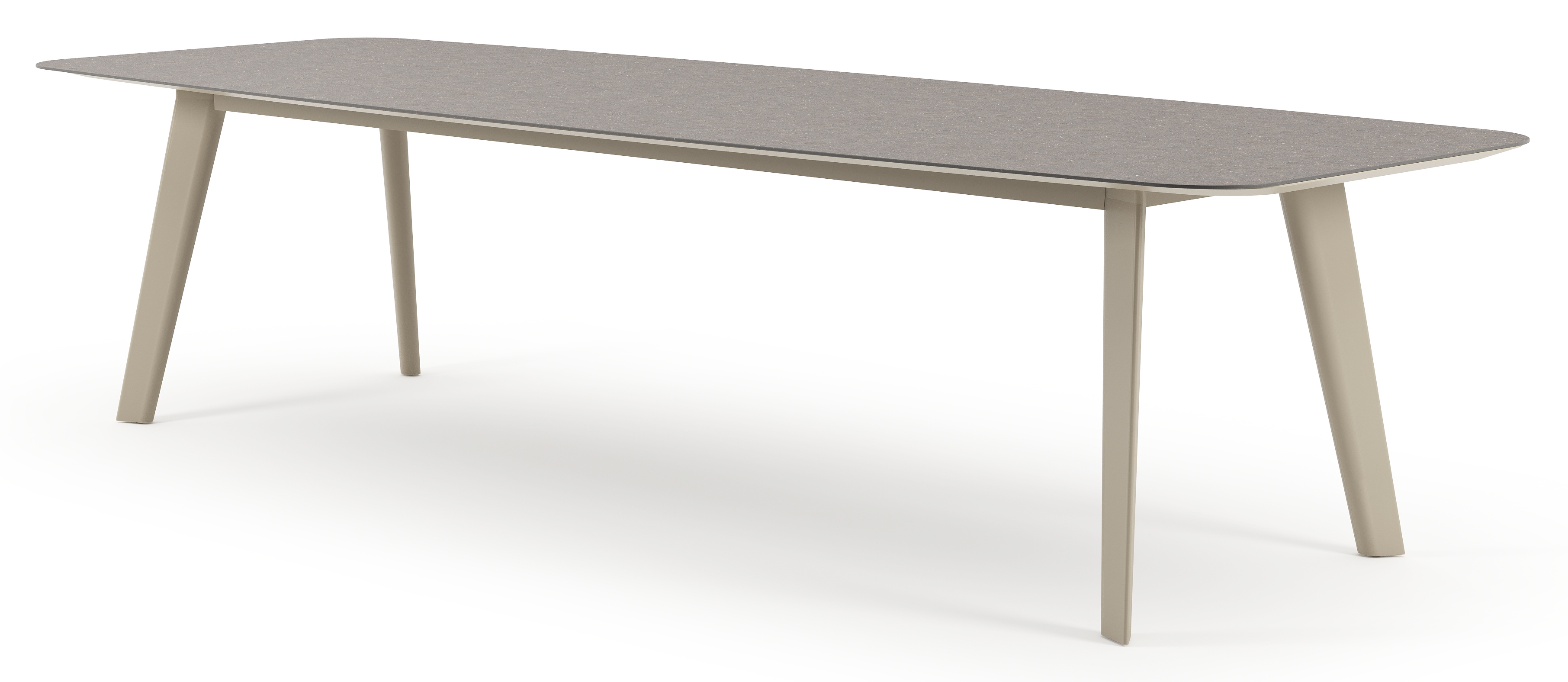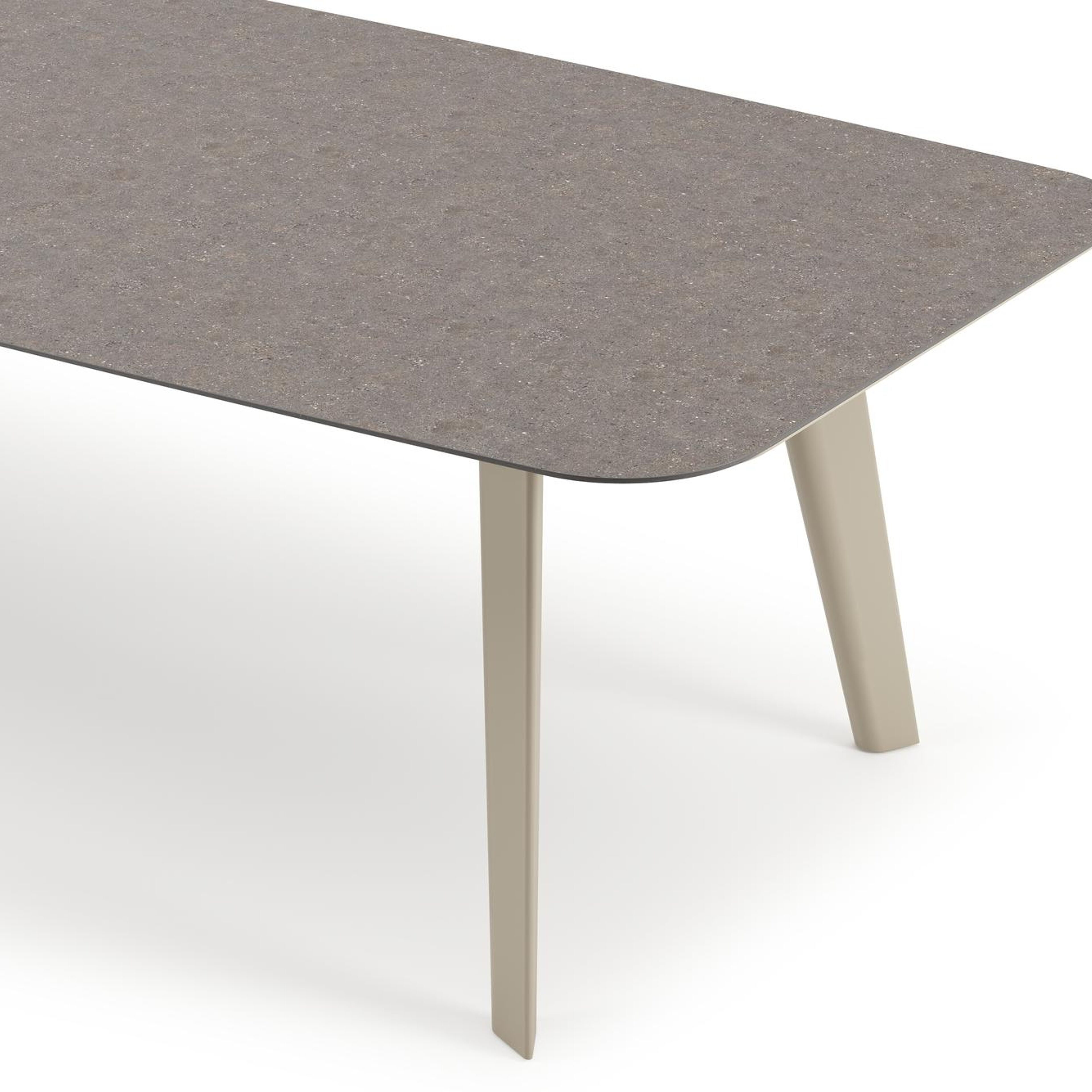 Table de jardin Lacrima forme de bateau en aluminium beige et céramique pleine Wulong - Lg. 315 x Lrg. 115 x Haut. 73 cm | Exterioo mobilier de jardin